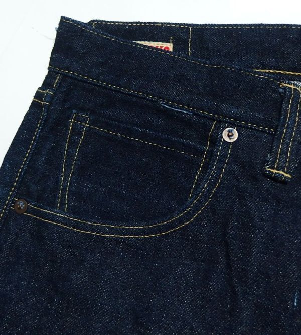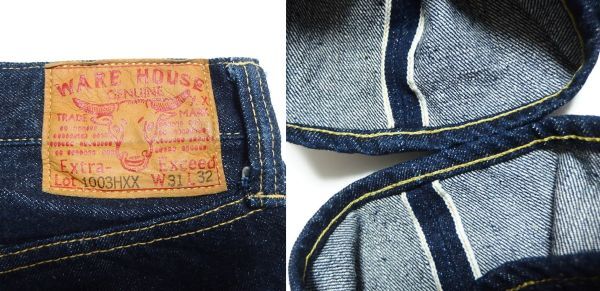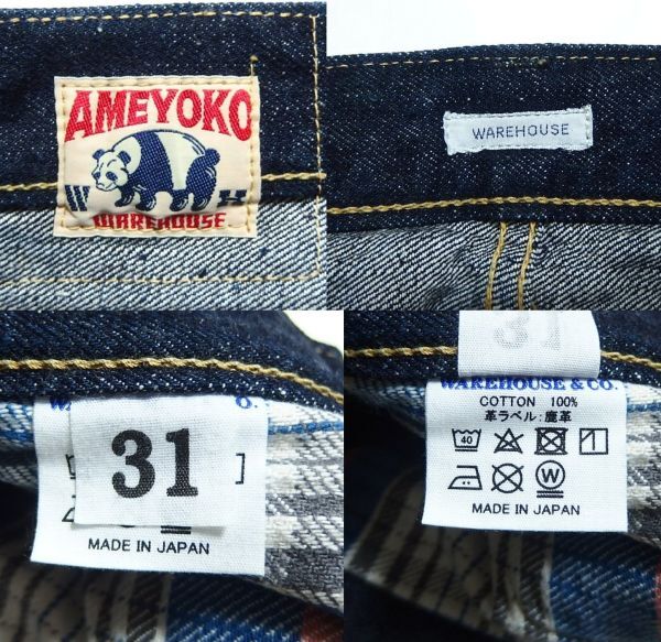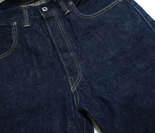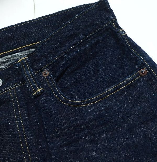 | <商品名> WAREHOUSE ウエアハウス HINOYA 別注 Lot 1003HXX 大戦モデル デニム パンツ W31 月桂樹ボタン ネルスレーキ <サイズ> W31 <詳しい寸法> ウエスト83股上30.5股下73裾幅20.5(単位:㎝) ぐらいです。 <商品状態> 若干の使用感、素材特有の着用に伴う細かなスレや色あせ、線状のアタリがございますが色は濃く良好です。 <商品説明> HINOYA 別注 Lot 1003HXX