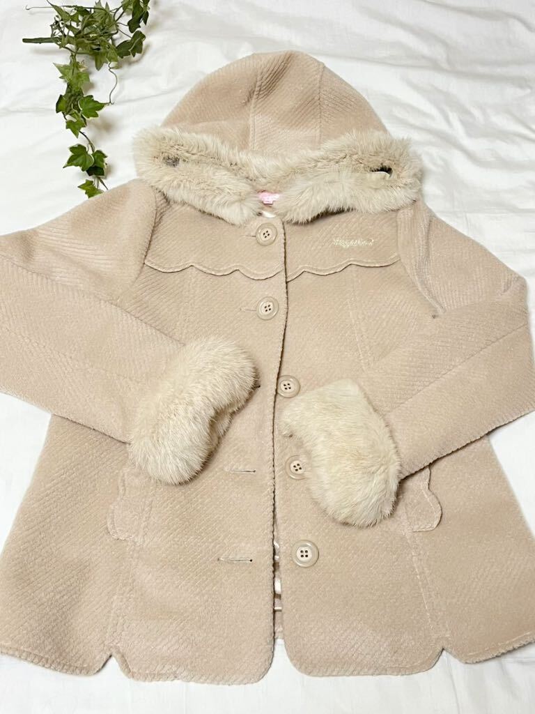 ★メゾピアノ mezzo piano お洒落 コート フード ファー お出かけ L 160★