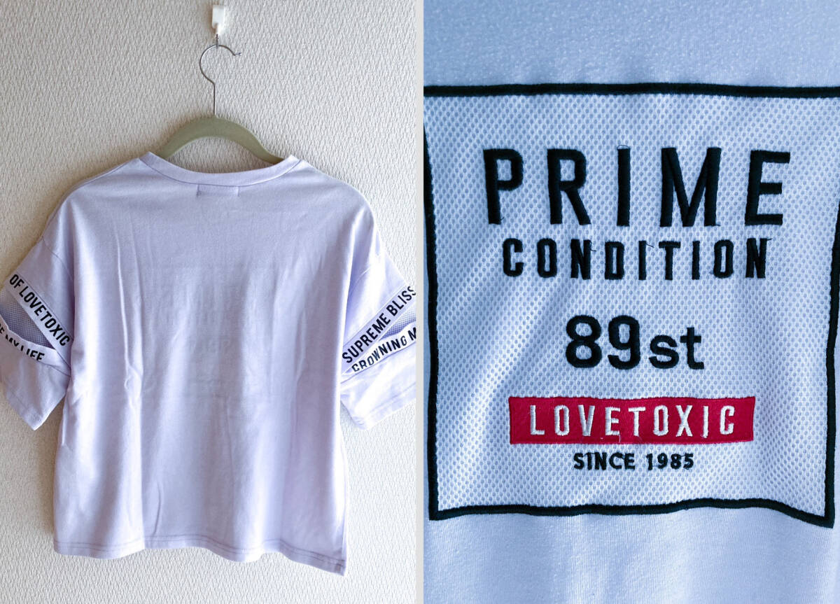 Lovetoxic ラブトキ ナルミヤ メッシュ ガールズ ロゴ 刺繍 半袖 Tシャツ トップス 腕 切り込み 肩開き 150 ラベンダー 紫