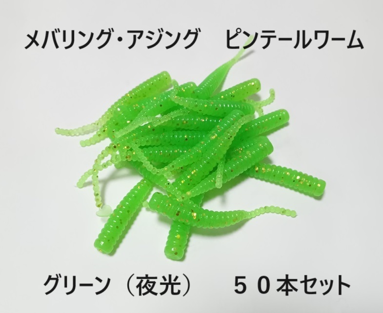 アジング・メバリング用 ピンテールワーム グリーン 夜光 蓄光 50本セット 1.6inch 1.6インチ 4cm アジ メバル 根魚 カサゴ 送料110円~ 550円