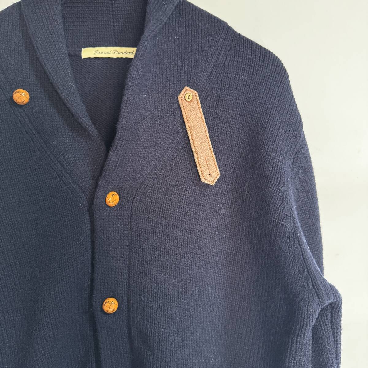 美品 ジャーナルスタンダード ショールカラー カーディガン ウール  Journal Standard ニットセーター クルミボタン ロゴ入り 雅瀬885