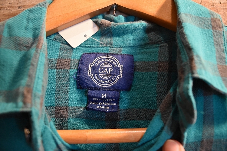 グッドカラー◎ビンテージOLDGAPオールドギャップ長袖コットンチェックシャツMグリーン×ブラウン系アメカジストリート100%コットンt16