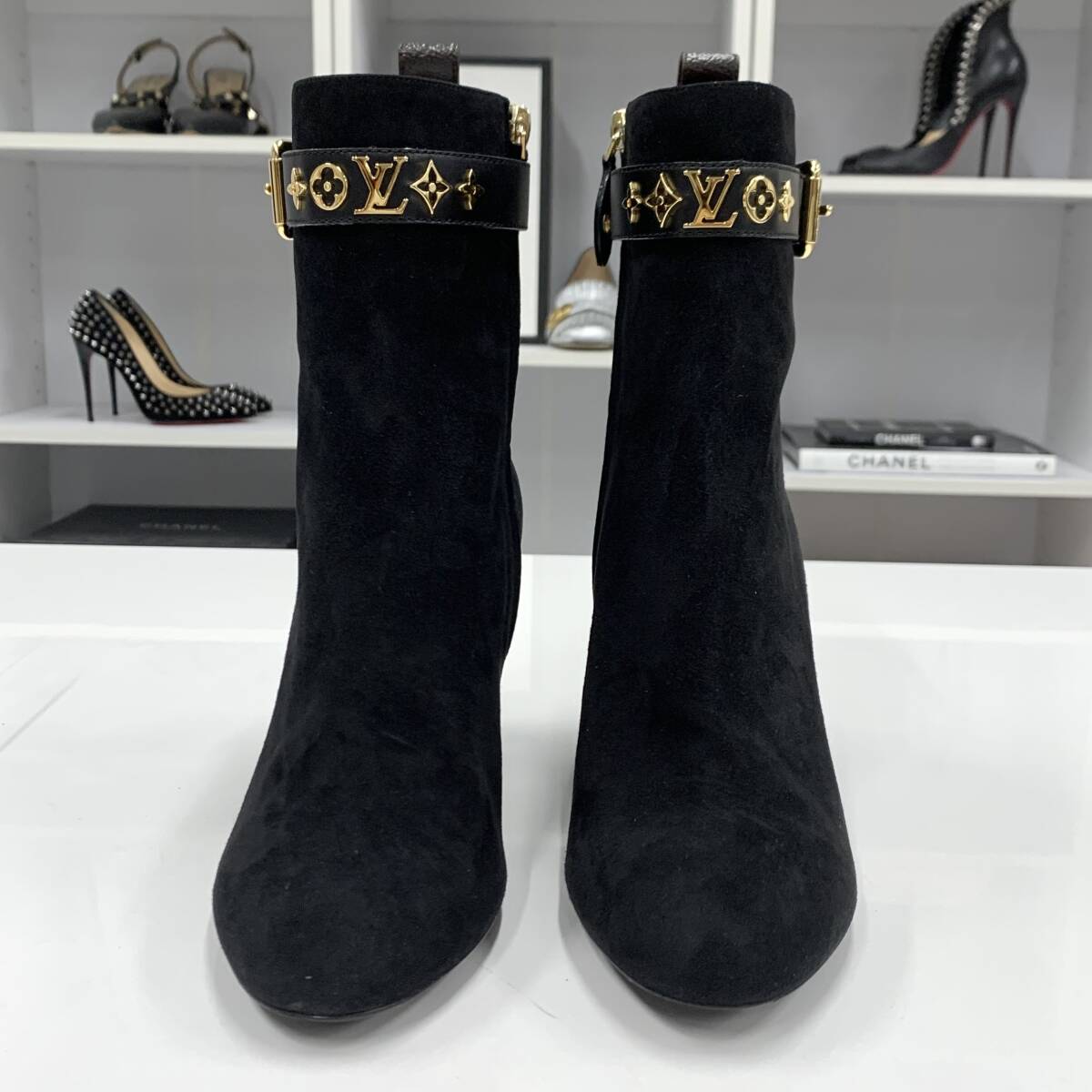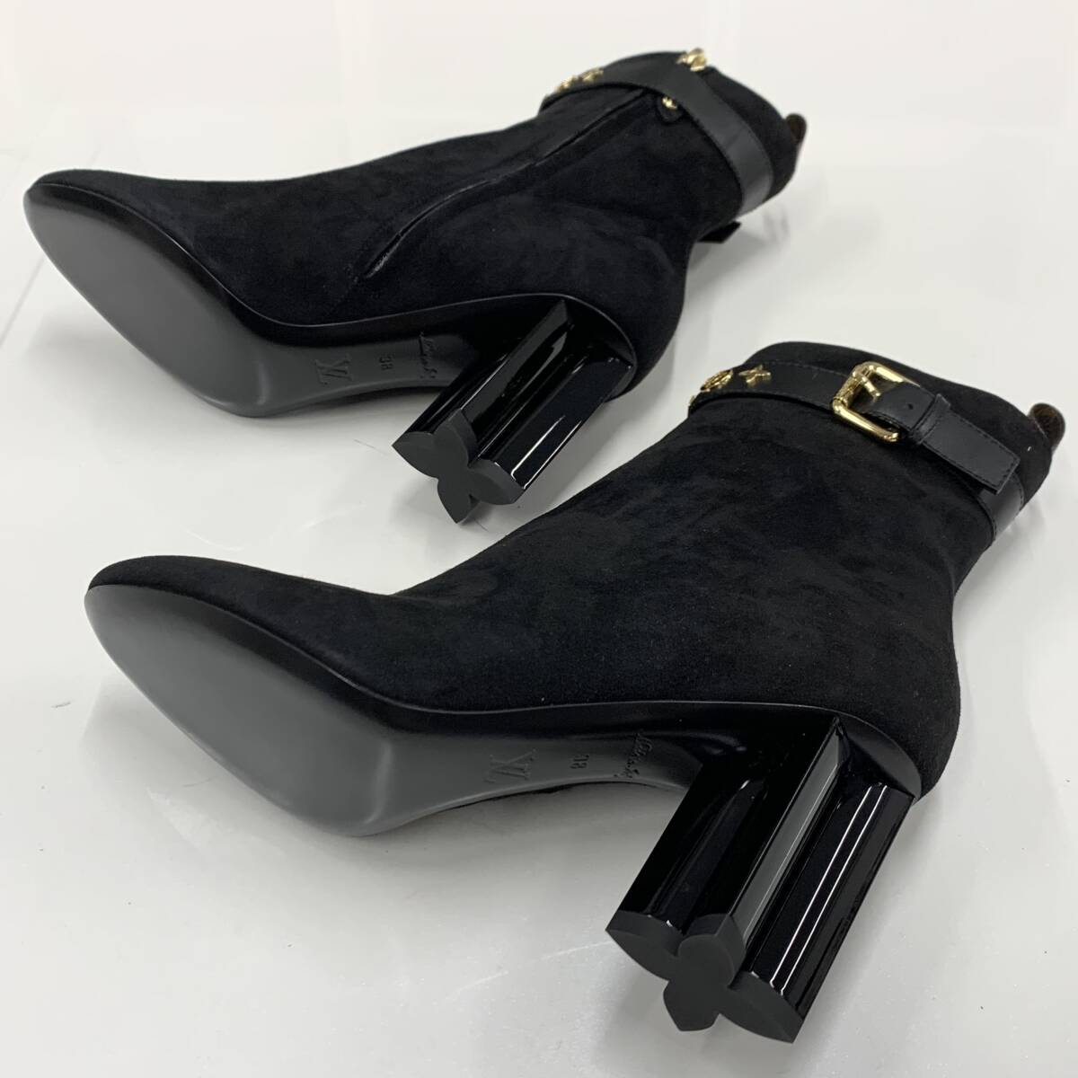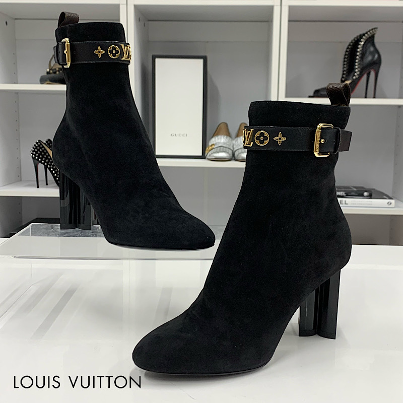 M10852 未使用 ヴィトン シルエットライン ロゴ スエード アンクルブーツ ブラック