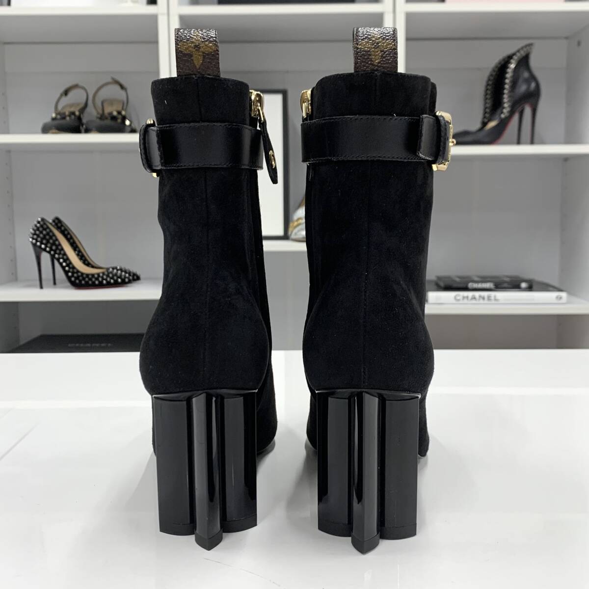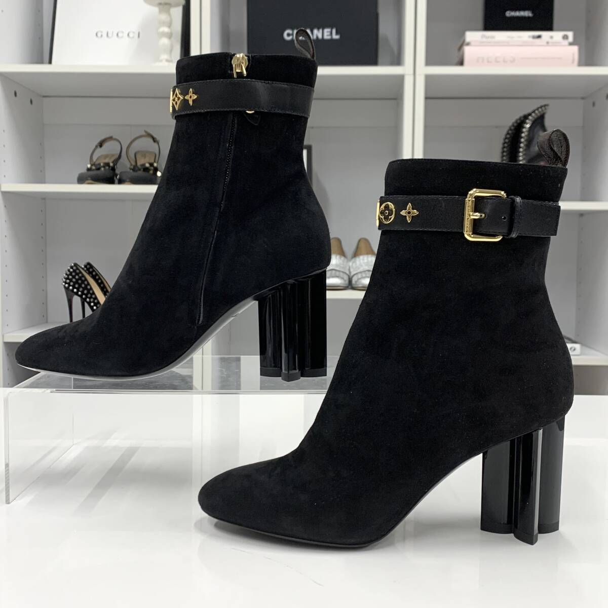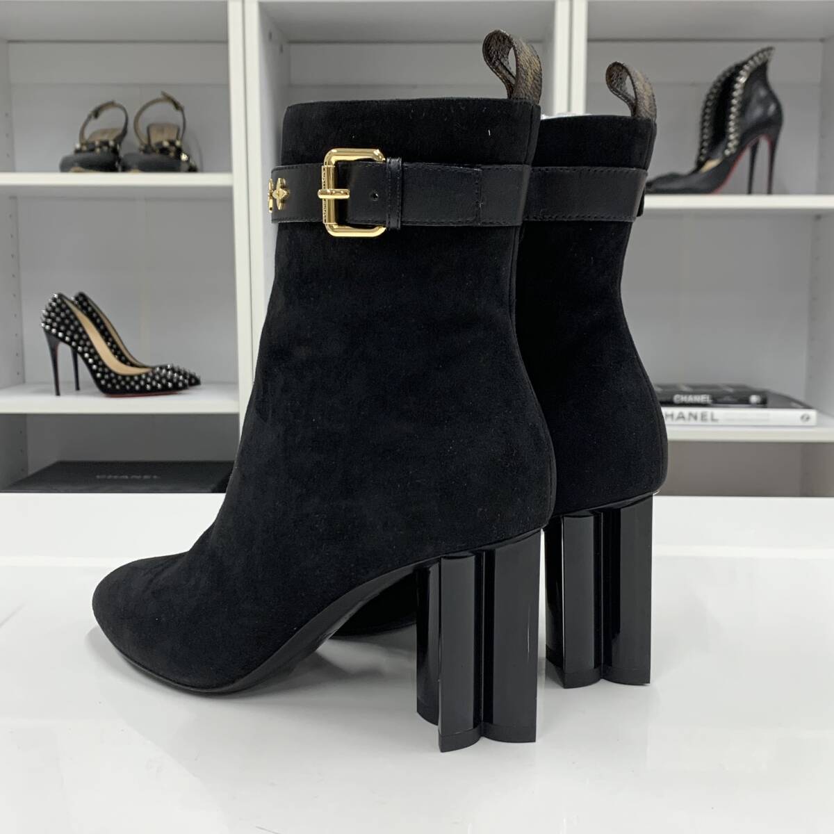 M10852 未使用 ヴィトン シルエットライン ロゴ スエード アンクルブーツ ブラック