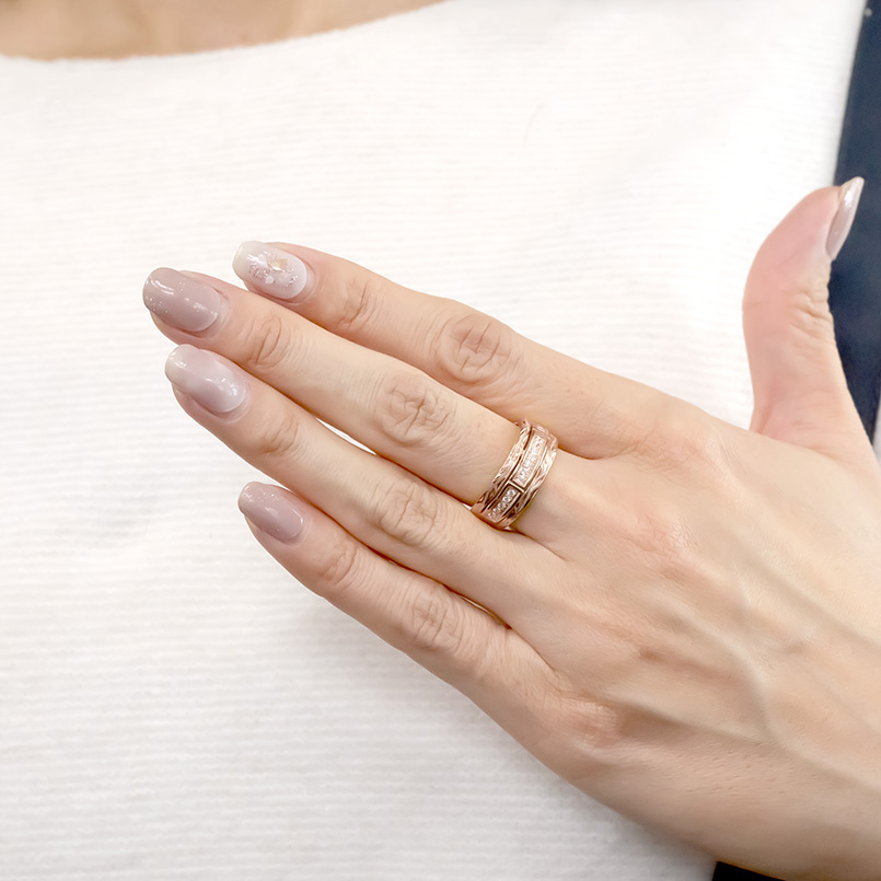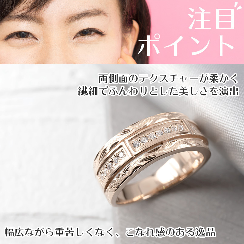 商品コード 210217102dg100 発送は3週間ほどです両面側のテクスチャーが柔かく繊細でふんわりとした美しさを演出したリング幅広ながら重苦しくなく、こなれ感のある逸品頑張っている自分へのご褒美や、大切な人へのプレゼントにおススメ材質 ピンクゴールドk18(品質を保証するk18の刻印)宝石名 天然ダイヤモンド 17石トータル 0.11ct大きさ リング最大幅 約 8ミリサイズ合わせは5-16号までサービスそれ以上のサイズは別途お値段がプラスされます。0.5号刻みも対応しておりますので、ご希望の場合はご要望欄にご記載ください。ひとつひとつ手作り加工 自分へのご褒美 誕生日 記念日 プレゼント 人気 ジュエリー リング 指輪 ピンクゴールドk18 k18 18k 18金 レディース ピンキーリング ダイヤモンド ダイヤ ブライダルリング エンゲージリング 婚約指輪 ギフト対応 マリッジ 結婚 指輪 婚約 ウェディング プロポーズ プレゼント 結婚祝い ジェンダーレス ハンドメイドジュエリー ギフト プレゼント 贈り物 フリースタイル ニッケルフリー ユニセックス LGBTQ 男女兼用 ジェンダーフルイド バディジュエリー小さいサイズ 大きいサイズ 対応 太めでおしゃれ 福袋