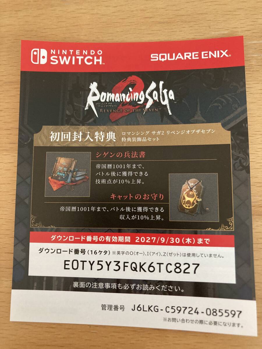 Switch版 ロマンシングサガ2 リベンジオブザセブン 初回封入特典アイテムコード使用済 コレクションに如何でしょうか
