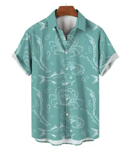 男性用半袖カジュアルシャツ、シープリントトップス、特大ストリートウェア、サマーファッション、デザイン:ライトグリーン