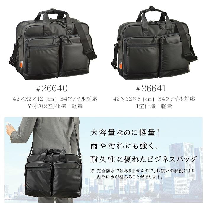 | ビジネスバッグ メンズ ブリーフケース B4ファイル トラベルバッグ 42cm 男性用 ショルダー付き 2way 軽量 撥水 PVCコート 軽量 出張 通勤 黒 #426641 マグナム / MAGNUM 【 商品説明 】 ◆ 外回りや出張などアクティブなビジネスマンが安心・気兼ねなく使えるビジネスバッグが登場! ◆ 大容量 B4ファイル対応!このサイズで約680gと持ち運びの負担を軽くしました! ◆ 内部にあるウレタン内装ポケットには、ノートPC収納など精密機器が収納可能。 ◆ 前面のファスナーポケット内部には、多機能なポケット多めで様々な荷物をわけて収納可能! ◆ 背面のキャリーバー通しをスーツケースのバーに通して持ち運びができます。 ◆ 丈夫な1680Dポリエスター生地に表PVCコートを施した素材を全面に使用したことで水汚れにも安心な撥水性能がアップ! 【 商品詳細 】 サイズ : 横幅42×高さ32×厚み8 [cm] 対応サイズ : B4ファイル(37.9×27.2[cm]) 重量 : 約680g 素材 : 1680Dポリエスター 表PVCコート 付属素材 : PVC カラー : 01-黒 生産国 : 中国製 正面 : ファスナーアウトポケット(2ヶ)、ファスナーポケット、小物ポケット 正面ファスナーアウトポケット(左側)内部 : マチ付きオープンポケット、ペン差し 正面ファスナーアウトポケット(右側)内部 : ファスナーポケット 背面 : アテポケット、キャリーバー通し 上部 : ファスナーポケット 本体内部 : ファスナーポケット、吊りベルト付きウレタン内装ポケット その他 : ゴム底鋲、可倒式底板、ショルダーベルト ※ 予告なく仕様変更する事がありますのでご了承下さい。 ※ 完全防水ではありません。お使いの状況により内部に水が浸みることがあります。 定価7480円 | |