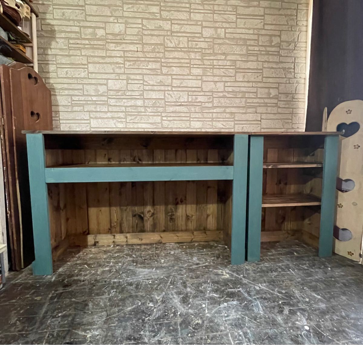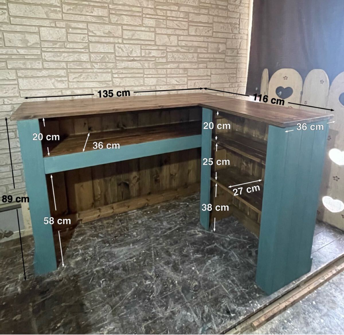 ![]() 商品説明ご落札後の製作になります。通常7日程度の製作期間を頂戴しますが状況により異なりますので納期のご希望はご入札前にご確認お願いします またサイズ・カラー変更のご希望もご落札前にお知らせお願いします こちらは高さ89㎝・幅135㎝・奥行116㎝の木製L字カウンターです L字部分は固定していませんので小さい方の棚はレイアウト自由です 各部のサイズは画像にてご確認下さい (記載サイズには多少の誤差がでますのでご了承お願いします) ご使用に応じてオーダー可能ですので価格等お問い合わせ下さいませ 材質・カラー【本体】アクリル塗料・ミントブルー(ワトコオイル仕上げ) 【天板】オイルステイン・ウォルナットブラウン(ウレタンつや消しニス仕上げ) 【棚側内部】ワトコオイル・ブラウン仕上げ 厚み2cm・幅9cmのパイン材使用 発送方法/料金アートセッティングデリバリー/梱包を解いてご指定場所に設置(搬入経路のご確認をお願いします) 【Eランク・三片合計350㎝以内】 北海道(函館エリア)32900円 北海道(札幌・千歳エリア)37800円 北海道(道北・道東エリア)40300円 青森/31900円 岩手・秋田/29000円 宮城・山形/26300円 福島/24900円 茨城・栃木・新潟/22900円 東京・神奈川・埼玉・千葉・群馬/20900円 長野/19000円 富山・石川・福井・山梨・静岡・広島・愛媛・高知/18000円 愛知・徳島・香川・島根/17600円 滋賀・京都・大阪・兵庫・奈良・和歌山・鳥取・岡山・岐阜・三重/17000円 山口/19000円 福岡・佐賀・大分/23000円 長崎・熊本/24800円 宮崎・鹿児島/26300円 【納期について】 出来る限りご希望に添う様にさせて頂いております 現在まで一度も期日に遅れた事はありませんが 万一、天災・事故等による運送会社の遅延 当方の作業上の事情による遅延により起きた損害に対しまして一切の補償は出来ません事をご了承お願い致します また万一配送中に破損が生じた場合は運送会社指定業者による修理対応となります事をご了承お願い致します コメントヒビや節抜けの無い木目のきれいな材料を選び天然木の特徴である伸び縮みも最大限抑える構造でしっかり丁寧に製作しておりますがご使用の過程で稀にヒビや歪みが生じるもございますのでご了承お願い致します(冷暖房の風や日光が直接当たる場所の設置はお避け下さい) 塗料は全て品質の高い物を使用しております 何層にも塗りを重ねた後、天板等はニス保護剤塗装・その他は撥水性の高いオイル仕上げで色褪せやシミ汚れを防止しております どちらの品物も化粧板家具とは違い大変しっかりしていますのでメンテナンス次第で末永くご使用いただけます。補修・塗り替えが簡単な様に仕上げておりますので必要となった時は塗料や用具・作業方法についてなどお問い合わせくださいませ ![]() |