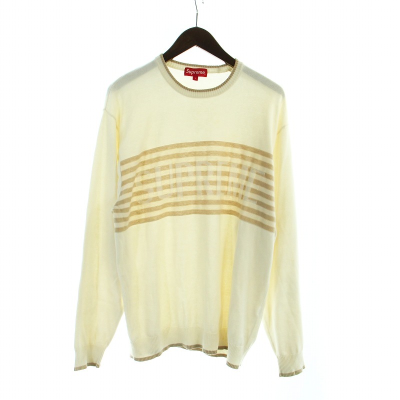 シュプリーム SUPREME 20SS Chest Stripe Sweater ニット カットソー ストライプ ロゴ コットン 長袖 L アイボリー ベージュ