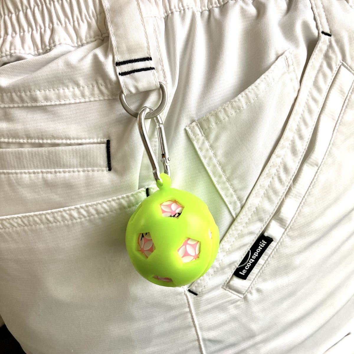 1つのホルダーにゴルフボールがキレイに収まります(*´∀`)♪ ソフトシリコン製の為、カンタンに出し入れができますし、手触りや耐久性も良くボールが落ちることもありません。カラビナフックが付いていますので、ベルトループにつければ予備ボールの持ち運びは簡単ヽ(^o^) キャディーバッグに取り付けても良いかと思います♪