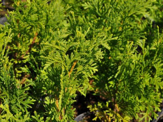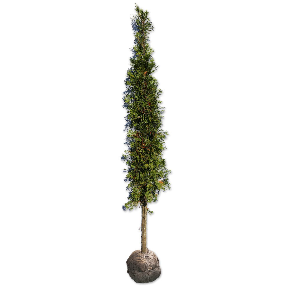 グリーンコーンは移植や管理が容易でコニファーの中でもポピュラーな品種です。春から秋にかけて鮮やかな緑色をしています。ふゆはややベージュがかった色になります。秋には黄金色の球果をつけ緑色とのコントラストがきれいです。主幹は直上し脇枝は上か斜め上に伸びます。神奈川県で育成された品種です。生垣にも使用されます。耐寒・耐暑性もあり強い品種です。高さもでますのでシンボルにも利用できます。密になる濃い緑色の葉が人気です。