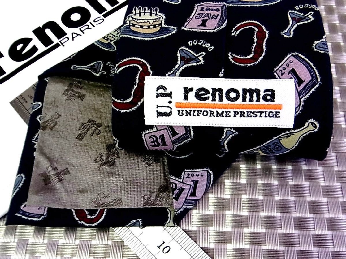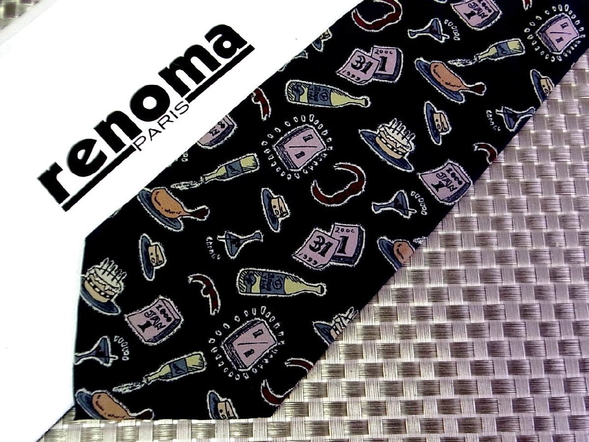 ★2729S★新品【チキン ケーキ シャンパン カレンダー 年越し 柄】レノマ【renoma】ネクタイ