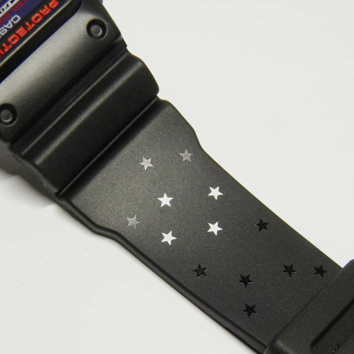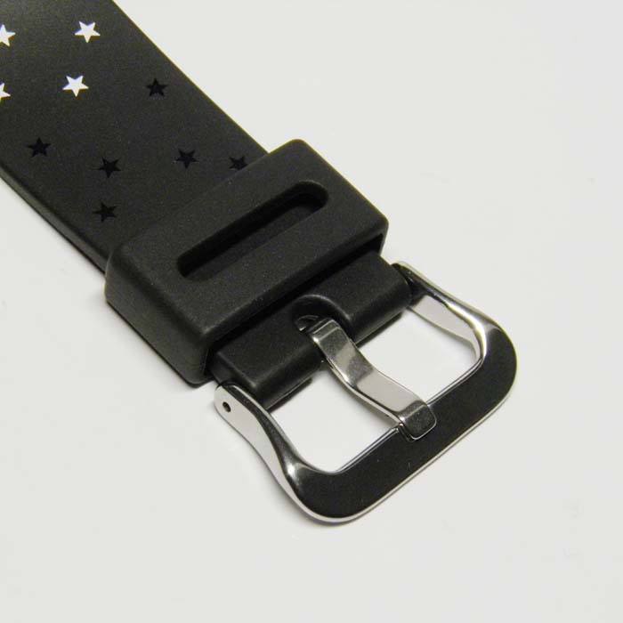 ブラックベースにネイビーの文字盤、レッドロゴを効果的に使い、