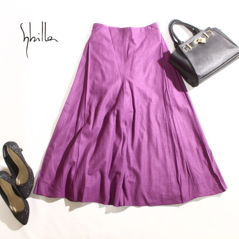 シビラ sybilla イトキン(株) 冬 真冬 毛90% デザイン フレア ウールパンツ M パープル 紫 日本製