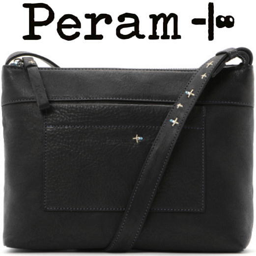 Peram[ペラム]ショルダーバッグ【メディカ】牛革 ブラック 刺繍 ビーズ 北欧柄 ナチュラルレザー 日本製 本物保証