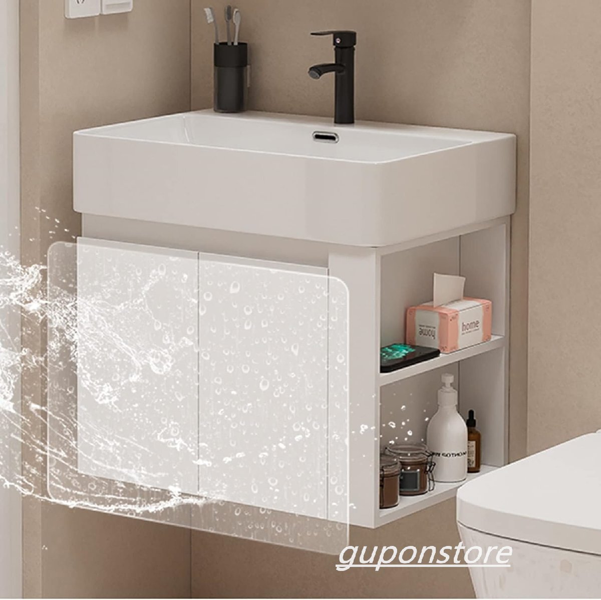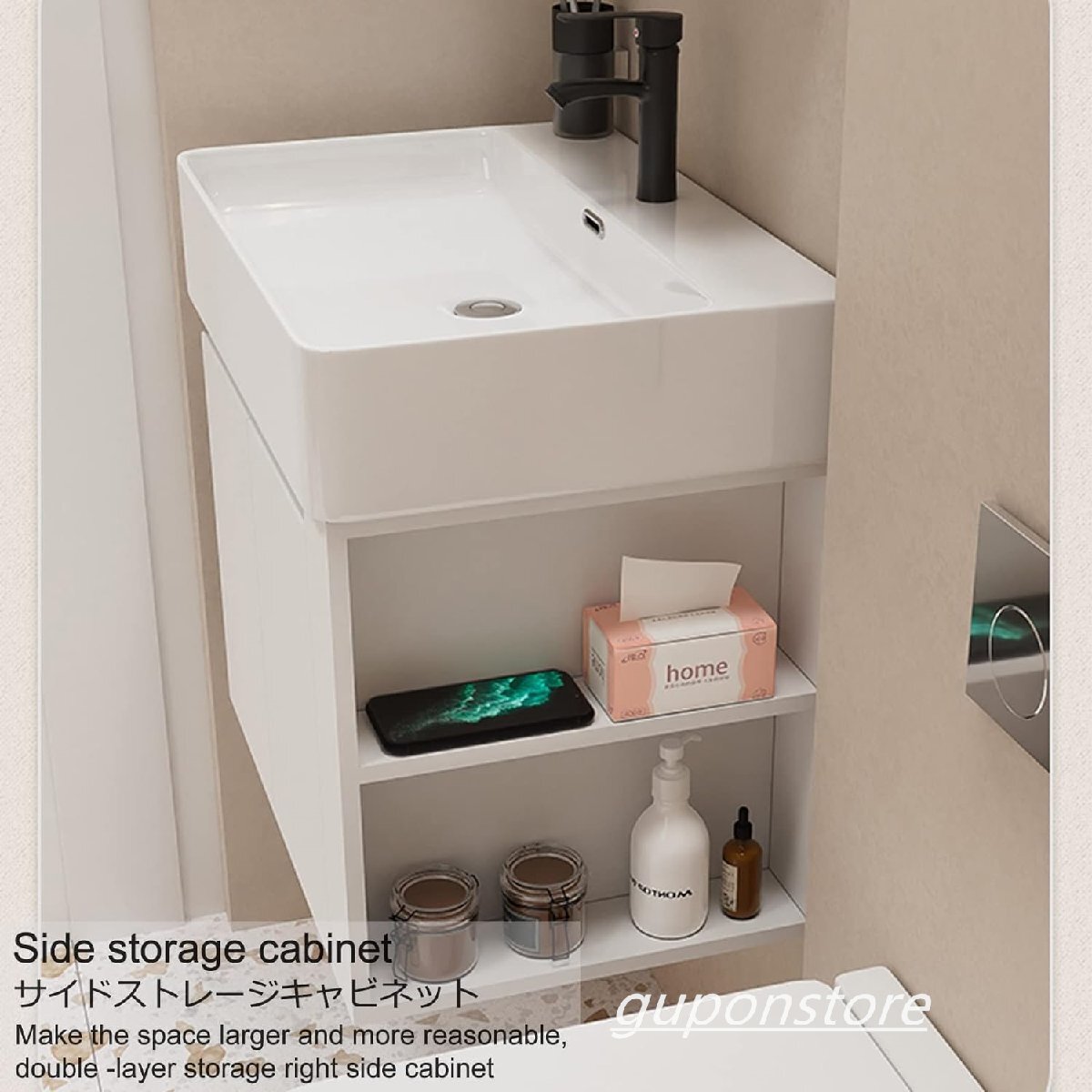 洗面台 洗面化粧台 バスルーム 壁掛け ドレッサー 洗面所収納キャビネット 長方形のセラミック容器シンクと右側の収納付き白い