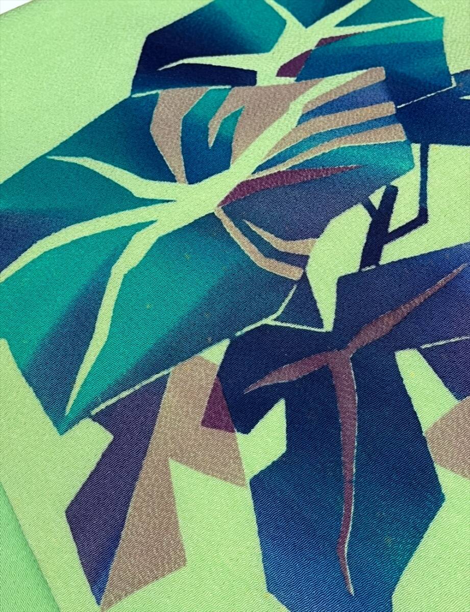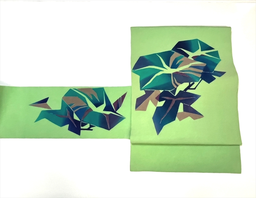 ちりめん地に型絵染で朝顔が染められています。