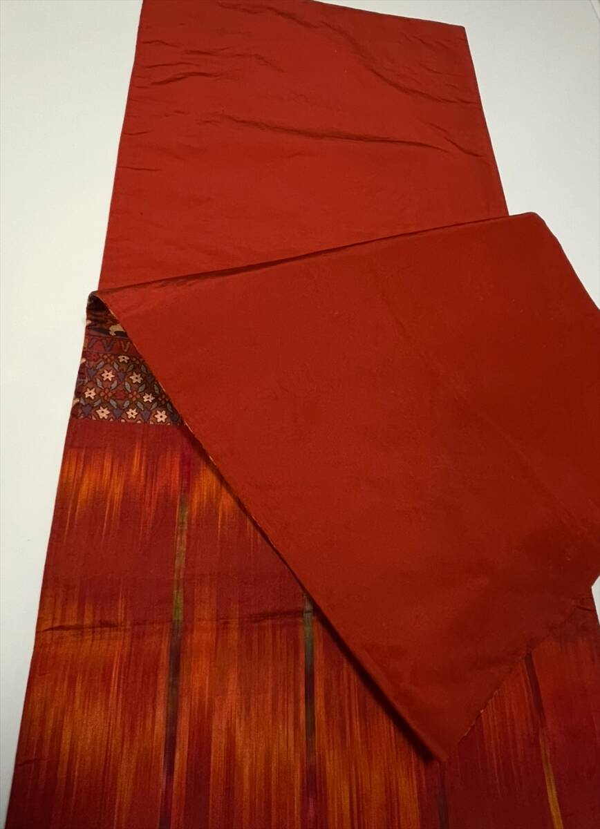 リサイクル帯 名古屋帯 袋帯 2本まとめて ちりめん 朝顔 若緑 型絵染 茶系 紹巴風 有職風 カジュアル
