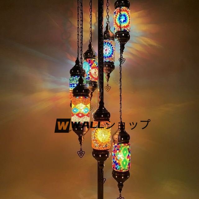 強くお勧め★【ケーリーフショップ】手作りトルコランプ 7灯 アンティーク風 フロアライト スタンドライト エキゾチック 間接照明