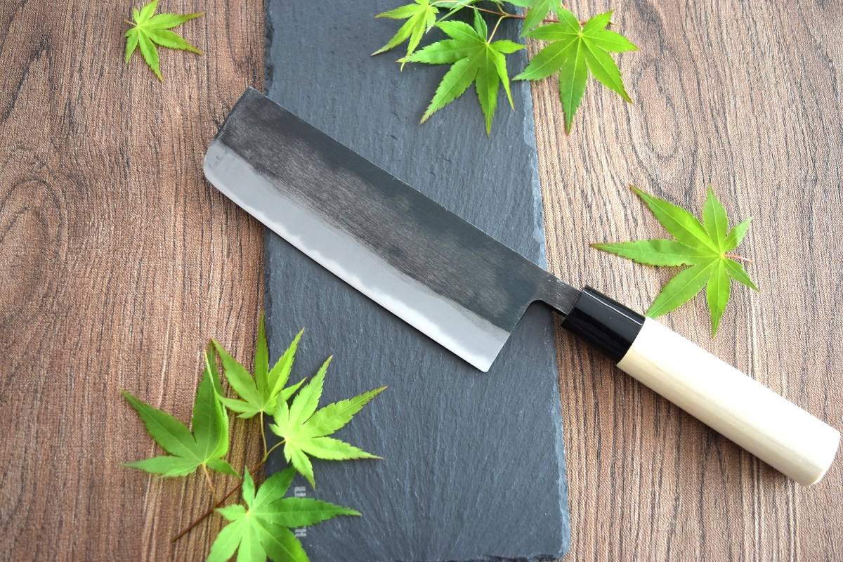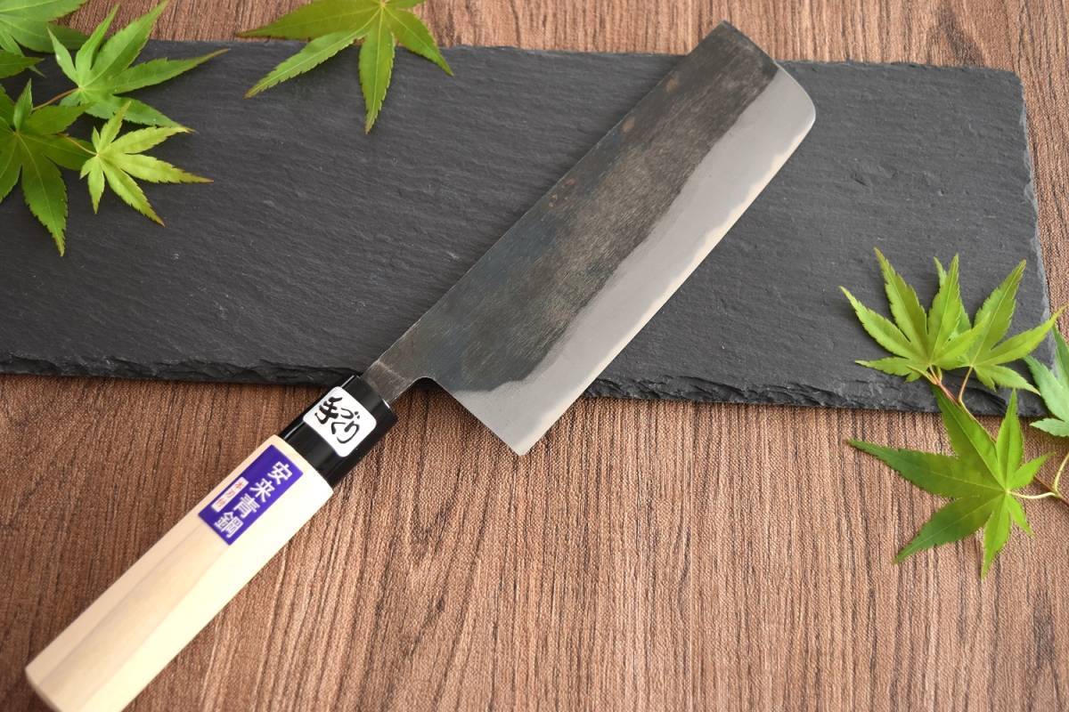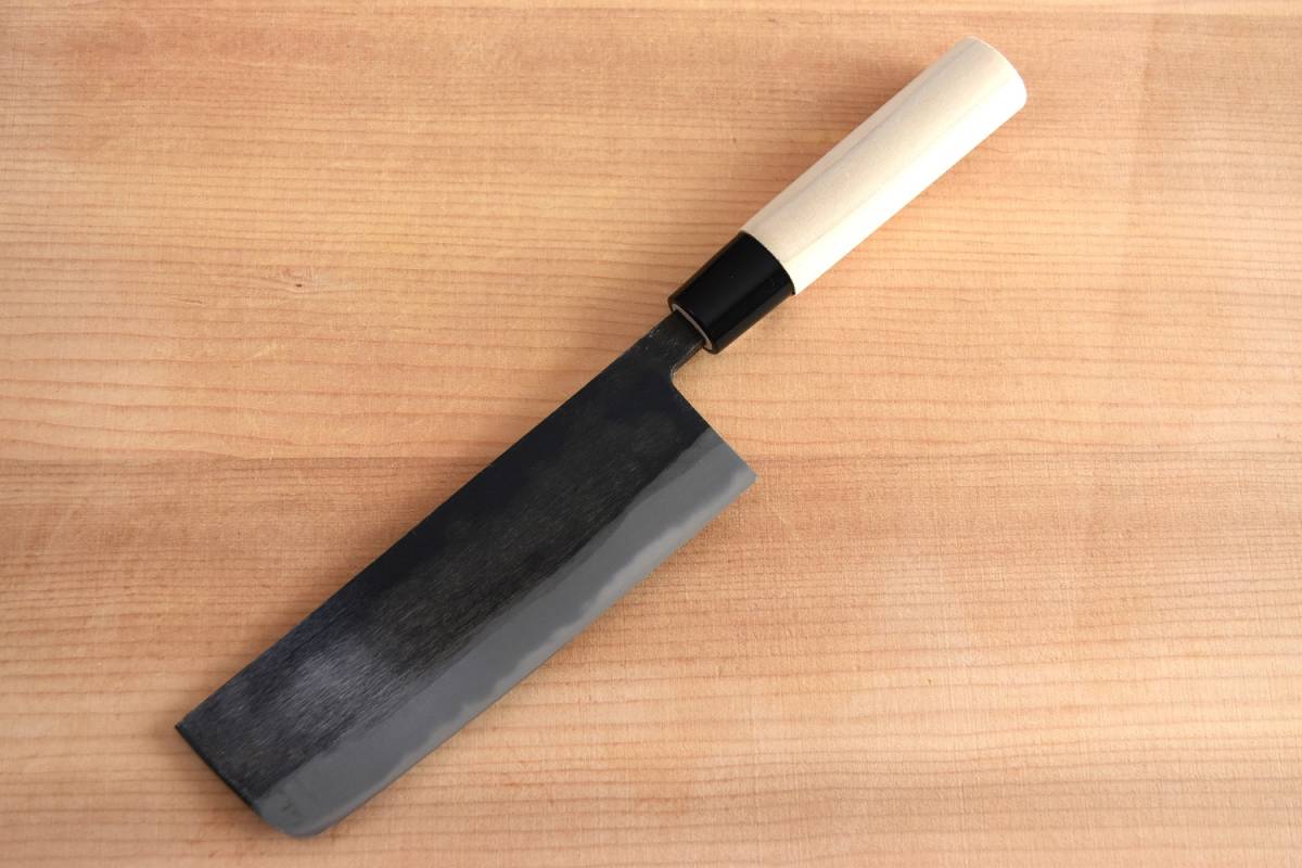 黒打 青鋼菜切包丁 白木柄 霞研ぎ 新品【送料無料】【即決】