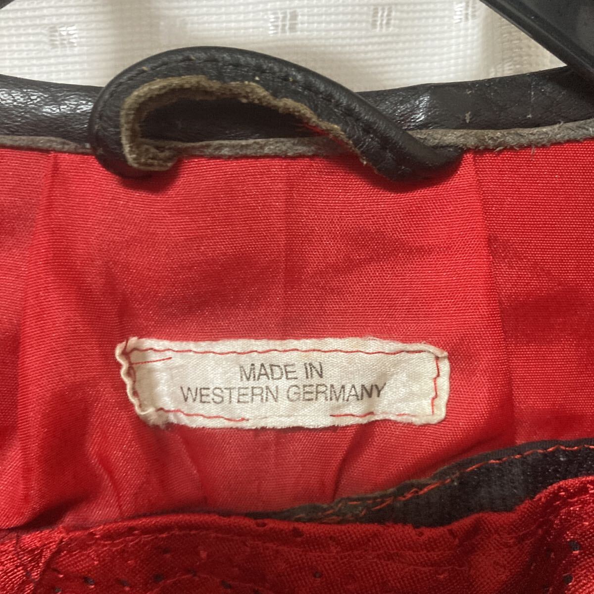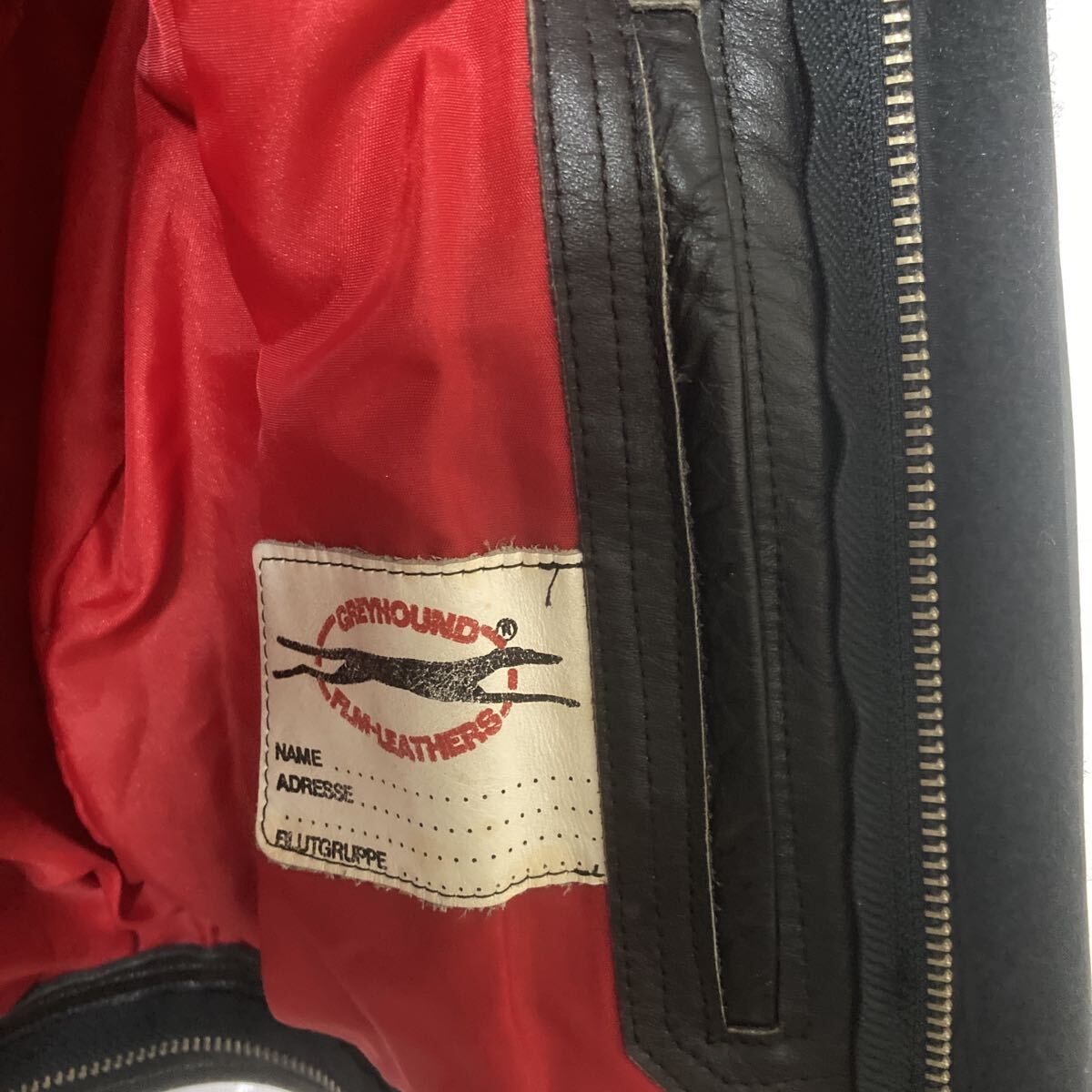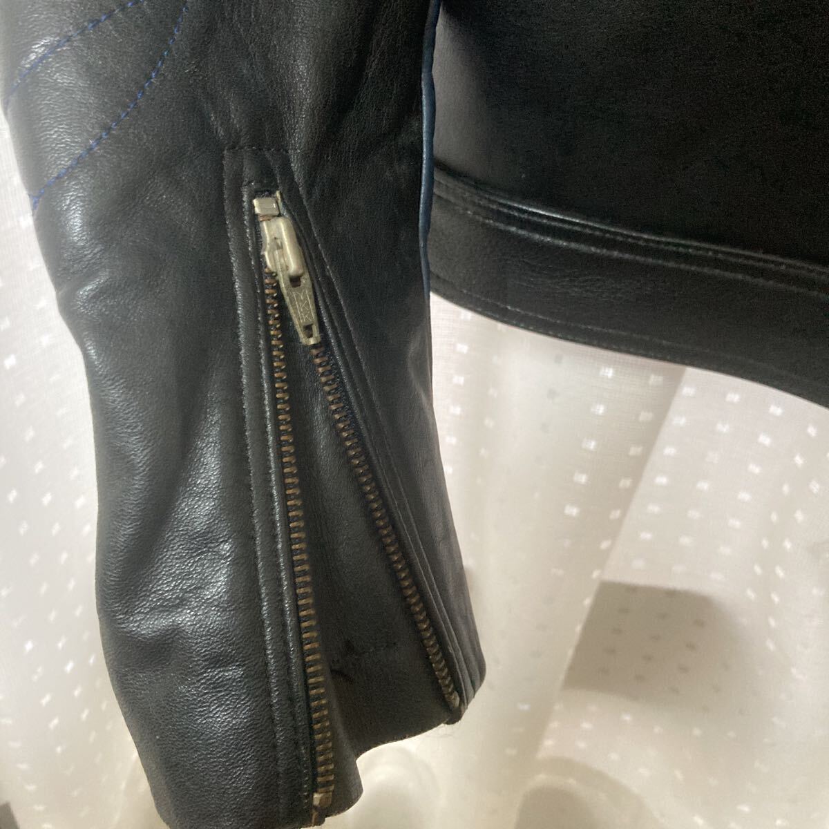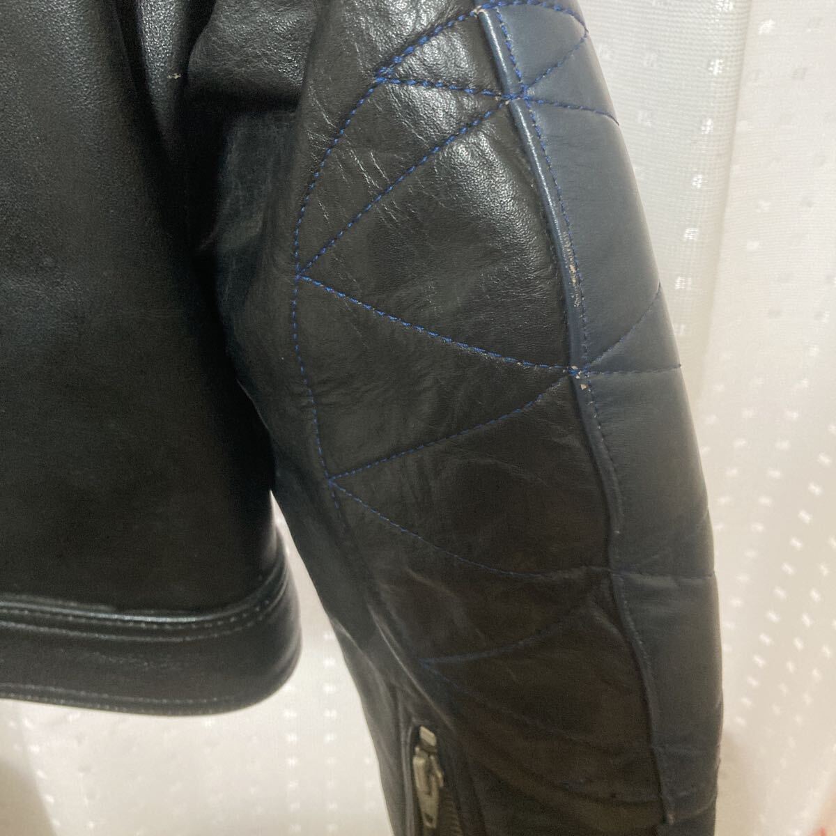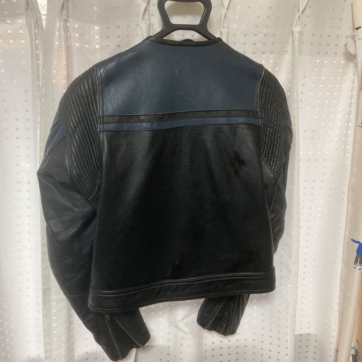 深いブルーのレザーに赤のライナーのコントラストが印象的な1着です。