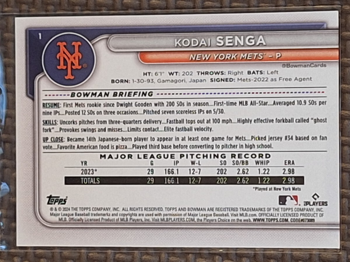 2024 Bowma #1 KODAI SENGA New York Mets Fukuoka Softbank Hawks