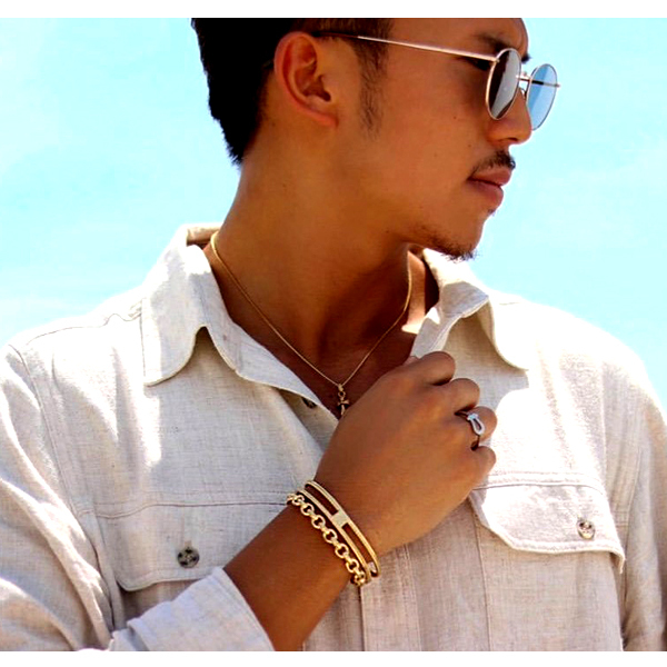 サージカルステンレススチール316L/K14イエローゴールドコーティング/ピンクゴールドサイズ 6.0cm(男性、腕の太い女性向け)5.5cm(女性、腕の細い男性向け)※サイズ調整可能(フリーサイズ)太さ:約10.0mmステンレススチール医療用品にも使われているサージカルステンレス316Lです。