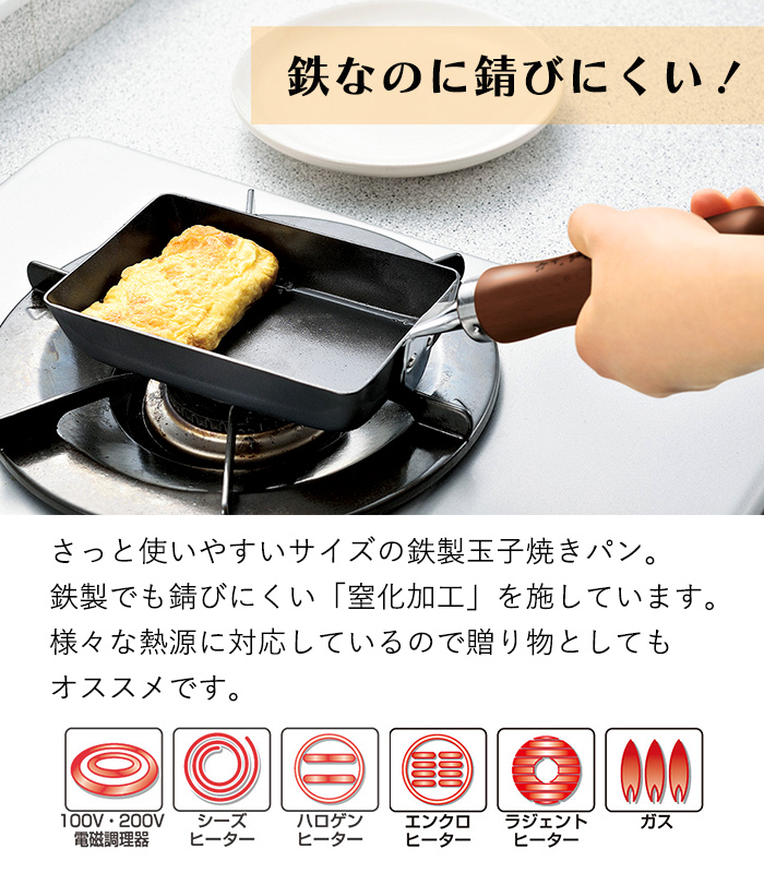 玉子焼き 鉄 フライパン 卵焼き 14×18cm 窒化加工 ガス火 IH対応 サビにくい 日本製 YKM-4371