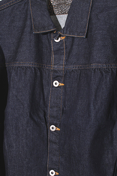 【備考】GJKTの元になったブラウスをイメージソースに制作されたアイテムになります。 当時の縫製技術から、縫製箇所がギャザーになってしまっていました。その姿から着想を得て、お腹部分にギャザーを取り、不思議なシルエットになっております。