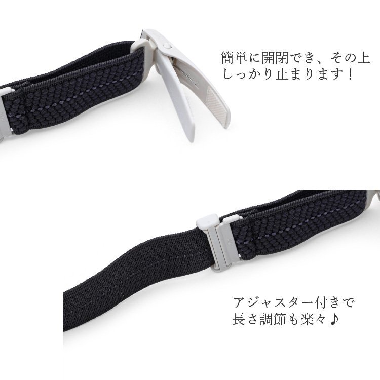 留め具:ポリカーボネイト100% 織ゴム/生地:ポリエステル79% ナイロン21% ゴム:ラバー100% |