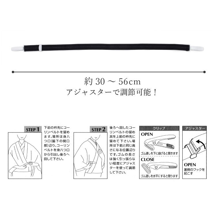 日本製 着物を着る時の必需品。 着物が着崩れしにくくたり、大変便利です。 着物・長襦袢にご使用下さい。 |