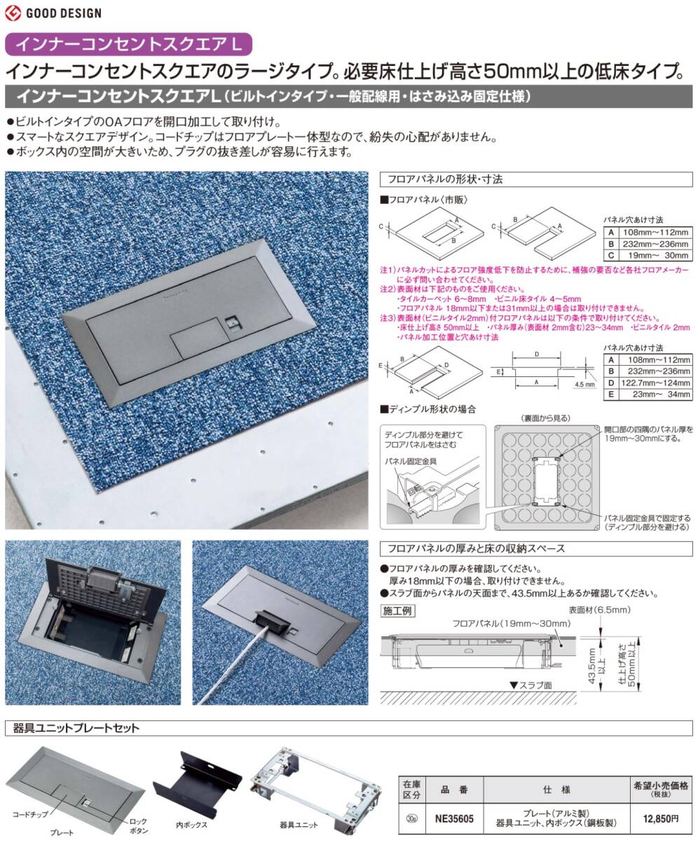 Panasonic インナーコンセントスクエアL 器具ユニットプレートセット / NE35605 新品未使用です。