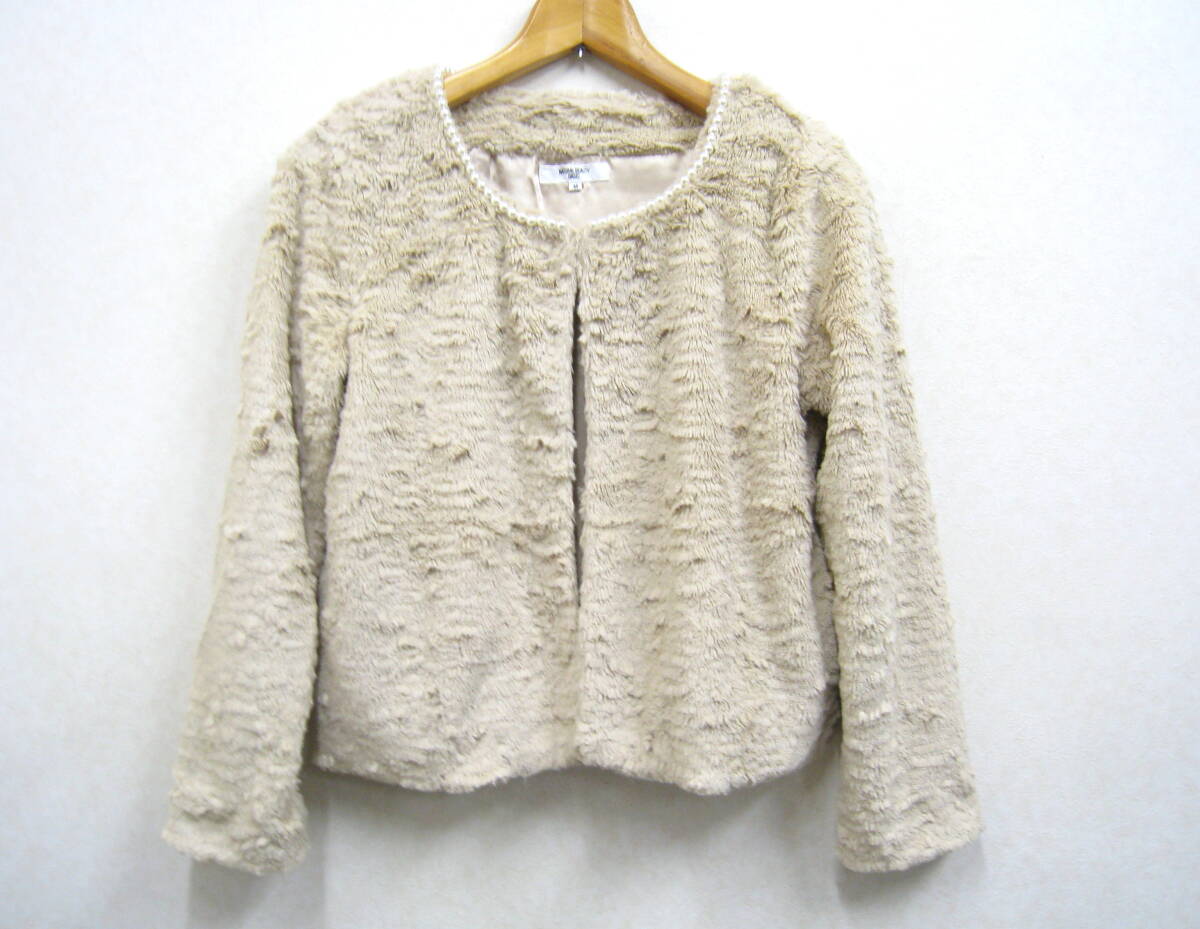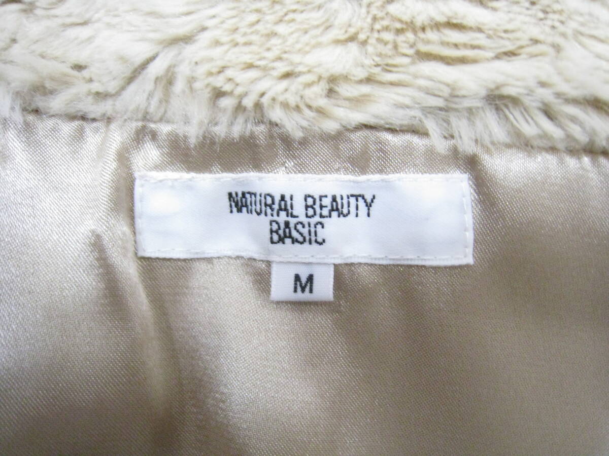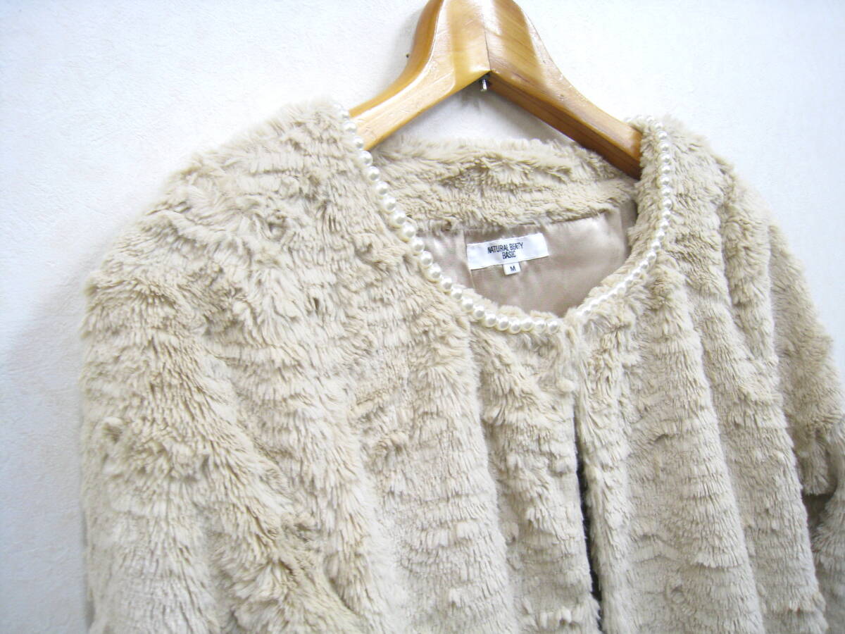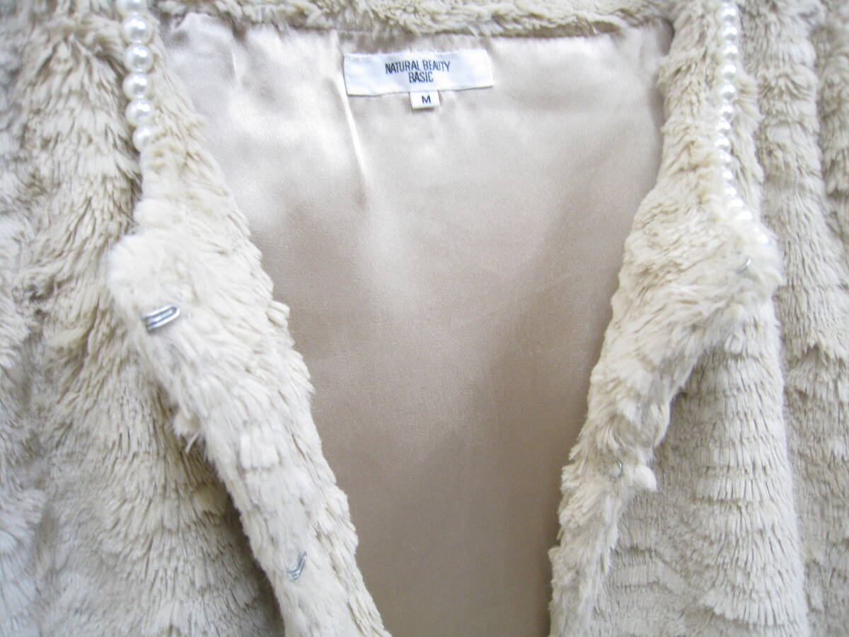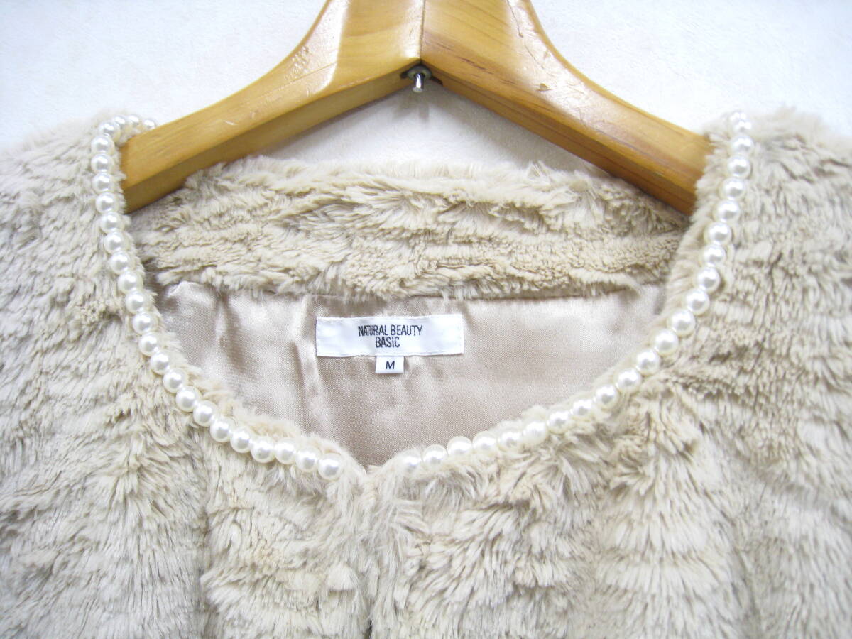 NATURAL BEAUTY BASIC◆ナチュラルビューティーベーシック フェイクファー ノーカラージャケット フェイクパール装飾 レディース サイズMです。