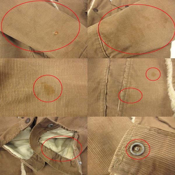 【状態】ボディ、袖、袖口裏、裏地ボア所々に汚れがございます。右袖口のボタンにサビがでており開閉ができなくなっています。