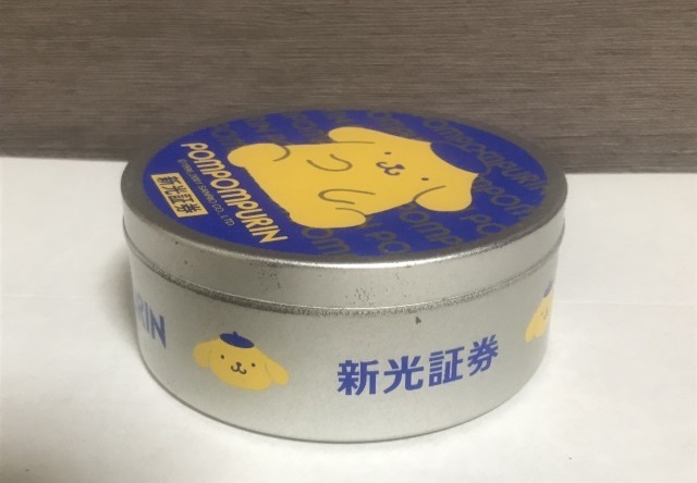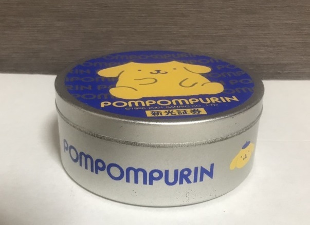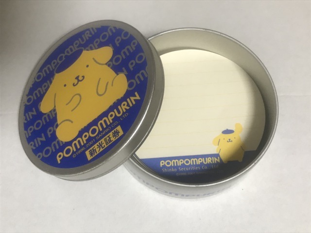 証券会社ノベルティ 『ポムポムプリン メモ 缶ケース』 【非売品】 です。
