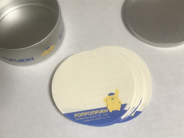 証券会社ノベルティ 『ポムポムプリン メモ用紙 缶ケース付』 サンリオ 【非売品】