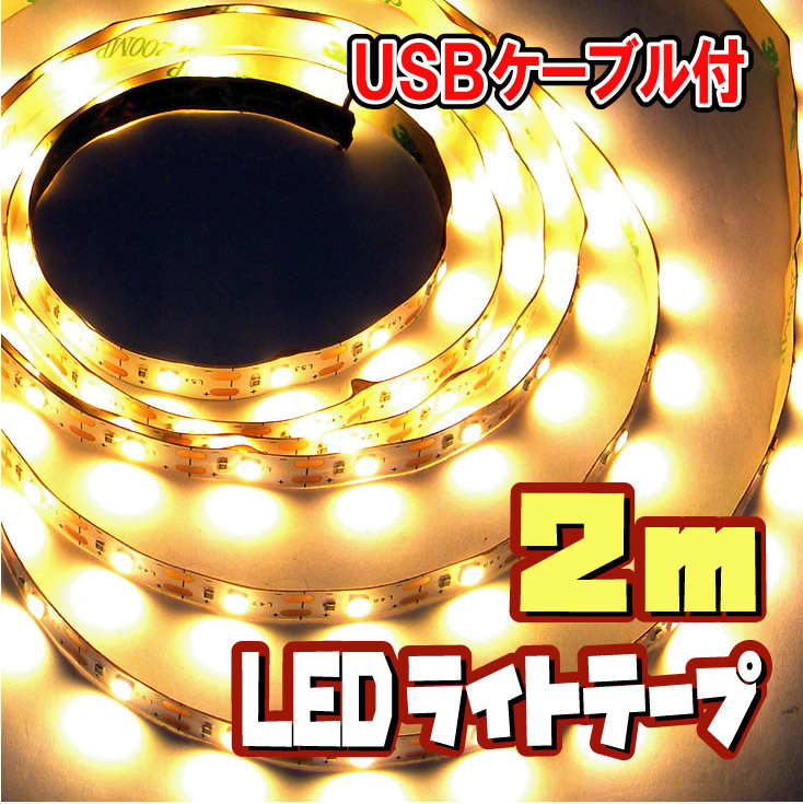 ★ LEDテープライト ストリップ 5V ★ USB給電 粘着テープ仕様 ★ 2m [電球色] USBケーブル付