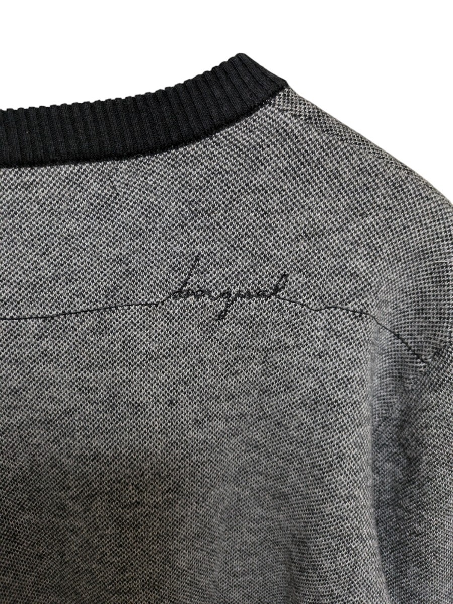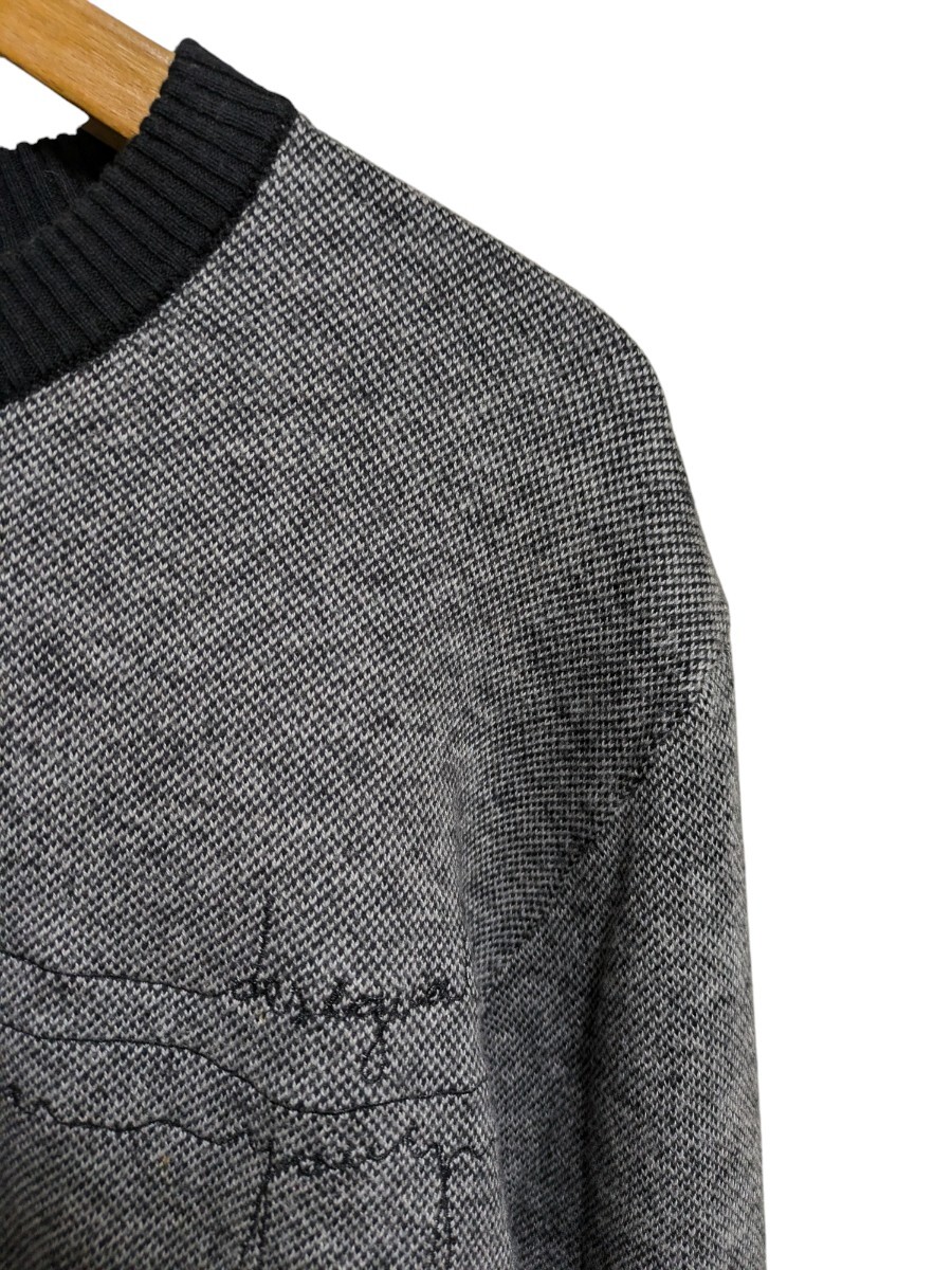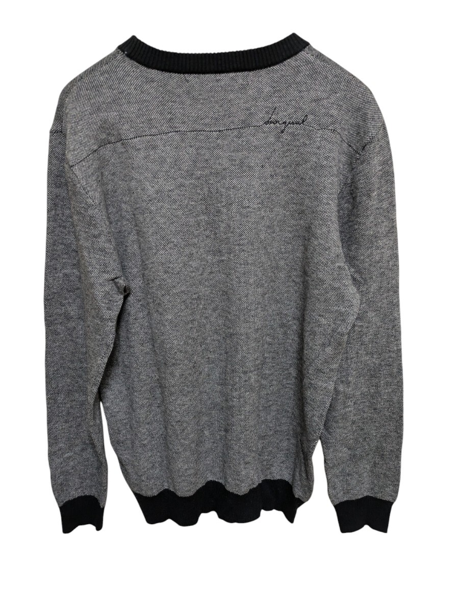 グレーのDesigual製トレーナー、Lサイズ、前面に刺繍デザイン