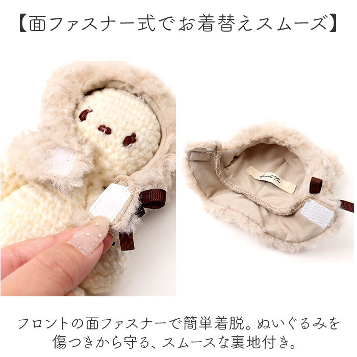 | 商品説明 | ・・【推しぬいを可愛くバージョンアップ】 ・お手持ちのぬいぐるみに着せるだけで、とびきりキュート!「アニマルミニぬいポンチョ」。 ・【おめかしして一緒にお出かけ】 ・もこもこボアのポンチョに、襟元リボンをON!推しぬいと一緒に着飾って、気分もアップ☆ ・【面ファスナー式でお着替えスムーズ】 ・フロントの面ファスナーで簡単着脱。ぬいぐるみを傷つきから守る、スムースな裏地付き。 ・【耳を付けたアニマルフォルム】 ・ぴょこんとした耳付き♪お気に入りのぬいぐるみが、ナチュラルカラーのアニマルに変身! ・【小さめのぬいぐるみにぴったり】】 ・・10cmぬいぐるみ対応のミニサイズ。推しのぬいグッズとも組み合わせやすい◎ ・【ぬい撮りしたり、楽しみ方自在】 ・ぬいぐるみをメインに、写真を撮るも良し。推し活の現場に連れていったり、お家時間も一緒に。 ・【推し活を楽しむAppel Toi】 ・シンプルで機能的な推し活アイテムを提案。ヲタ活を楽しむ女子の味方☆ |