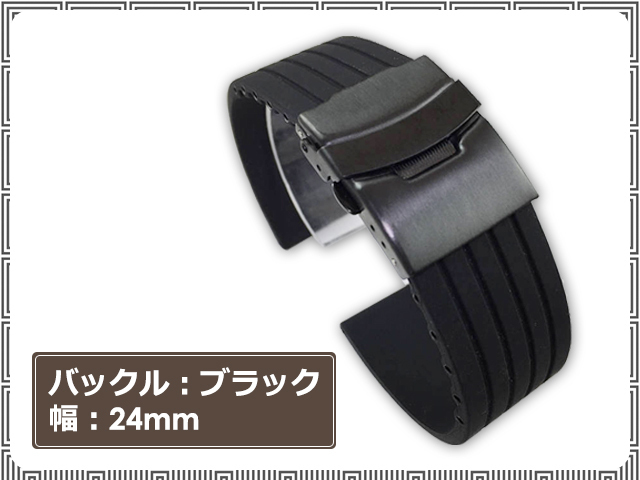 時計バンド 交換ベルト シリコーンゴム 腕時計 ストラップ 24mm ブラック金具×ブラック