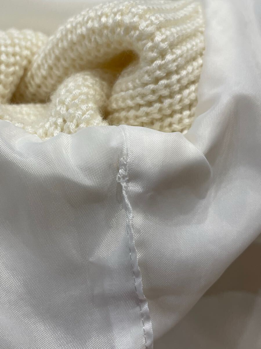 首元や袖口の汚れ、生地のスレや袖ニット部分のひっかけ傷、内側の糸のほつれがありますが、まだまだご着用して頂ける商品です。詳しくは写真にてご確認ください。