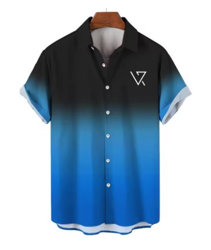 メンズ半袖Tシャツ、グラデーションカラーデザイン、カジュアル、夏服、カラー:ブルー