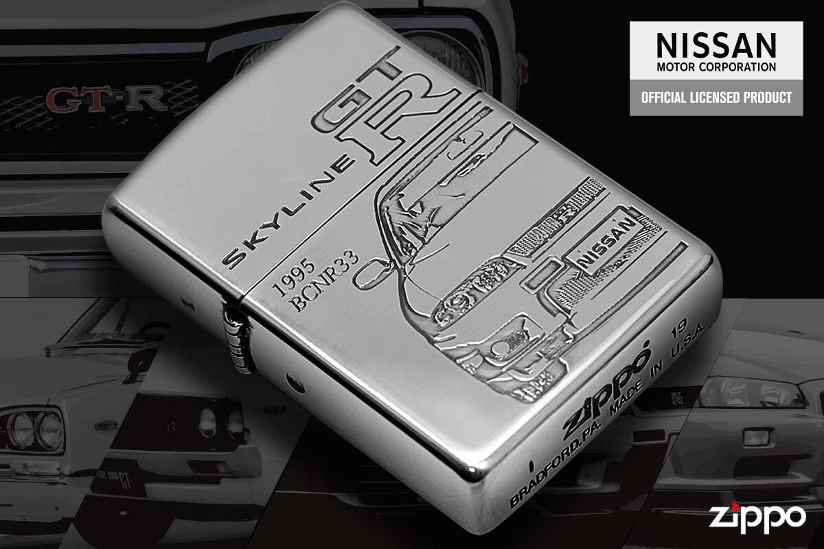スカイラインGT-Rの「GT」は「グランドツーリングカー」の意味。「R」はレーシング仕様であることを表します。国内外の数々のレースで圧倒的な速さを誇ったレース仕様車がほぼそのまま市販されたという点で、歴代のスカイラインGT-R全てが市販車の最高峰であったといっても過言ではありません。初代の「ハコスカ」、2代目の「ケンメリ」、3代目の「R32」、4、5代目の「R33」、「R34」。どのZIPPOを選ぶかはあなた次第。