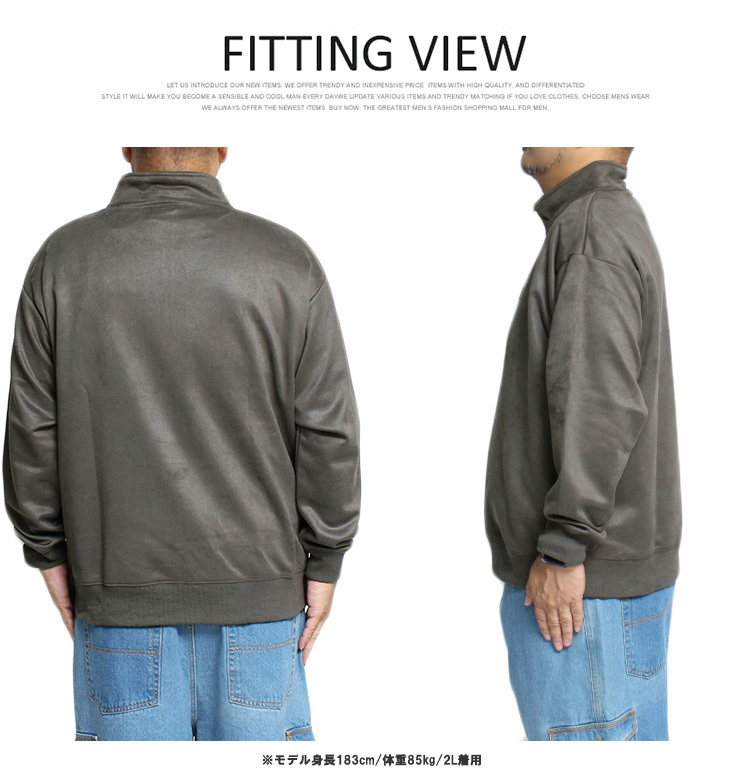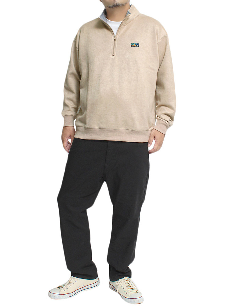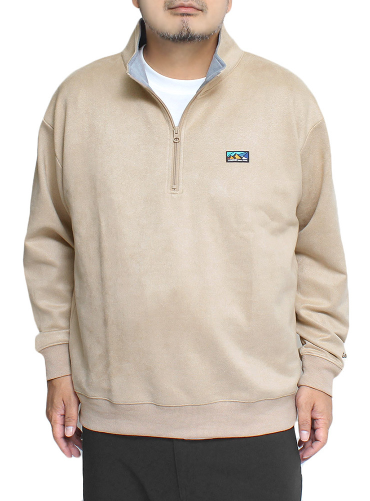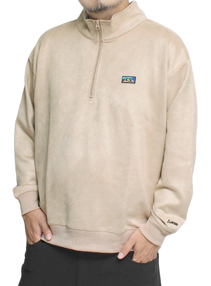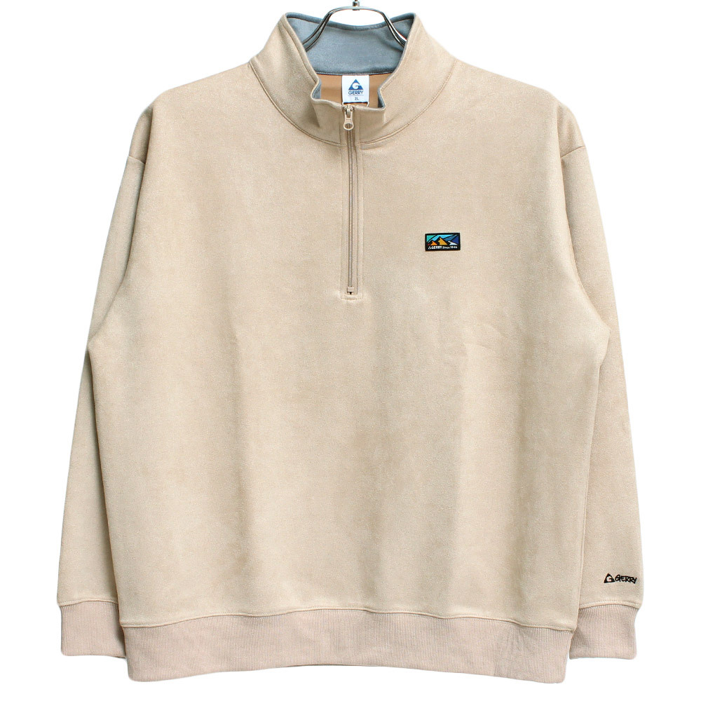 商品名 | 【新品】 2L ベージュ GERRY ジェリー ハーフジップ スウェット メンズ 大きいサイズ カットスウェード ロゴ プリント スタンド トレーナー |