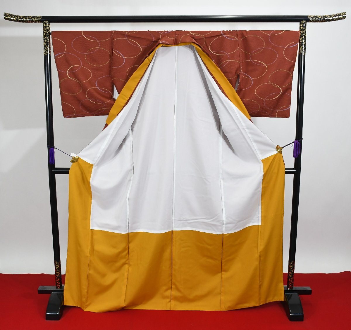 サイズ | ▼身丈 (背中から) 165cm ▼裄丈 68cm ▼袖丈 49cm ▼後巾 30cm ▼前巾 24.5cm |