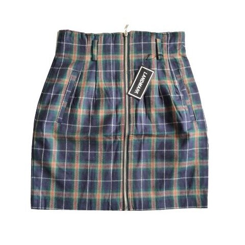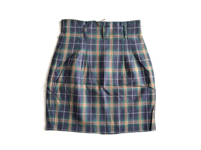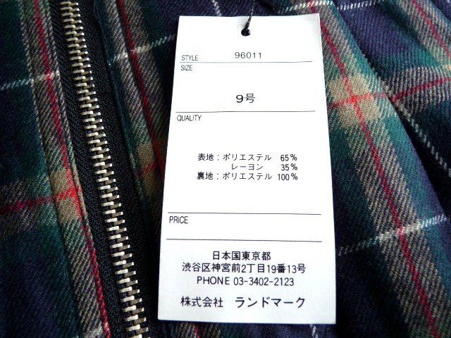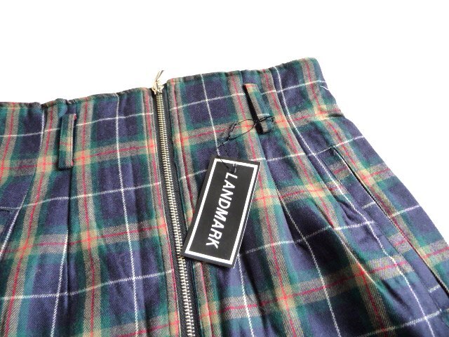新品 LANDMARK 紺 緑 チェック ジップ タイト ミニ スカート M 9号