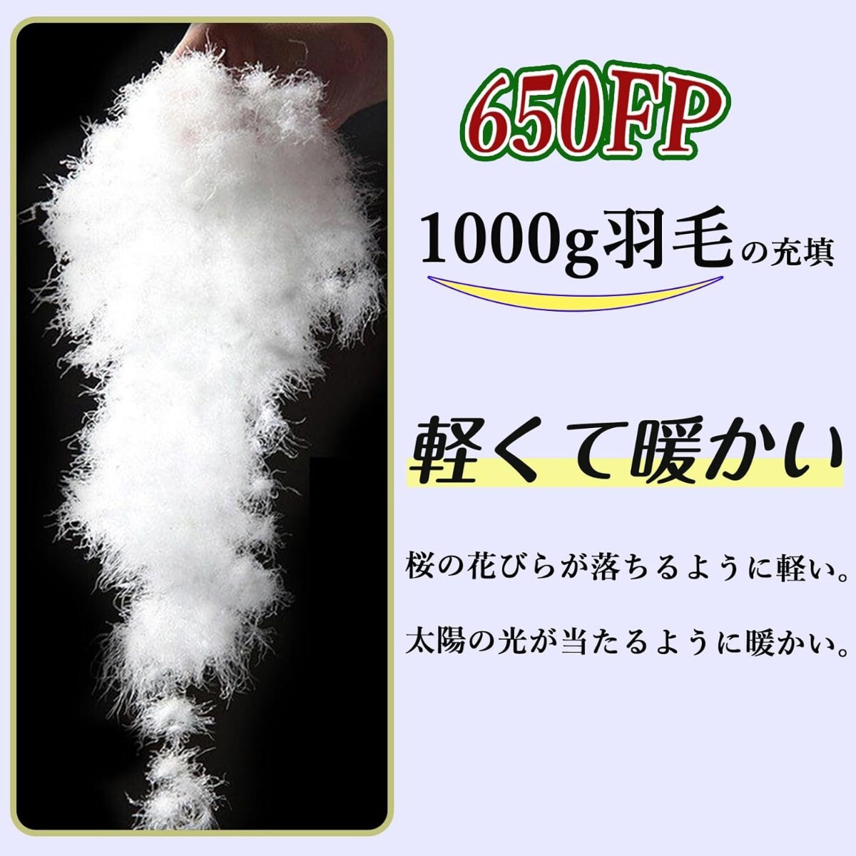 商品総重量:約1.6kg 充填物:約1000g羽毛(軽い、収納コンパクト、優れた保温性)
