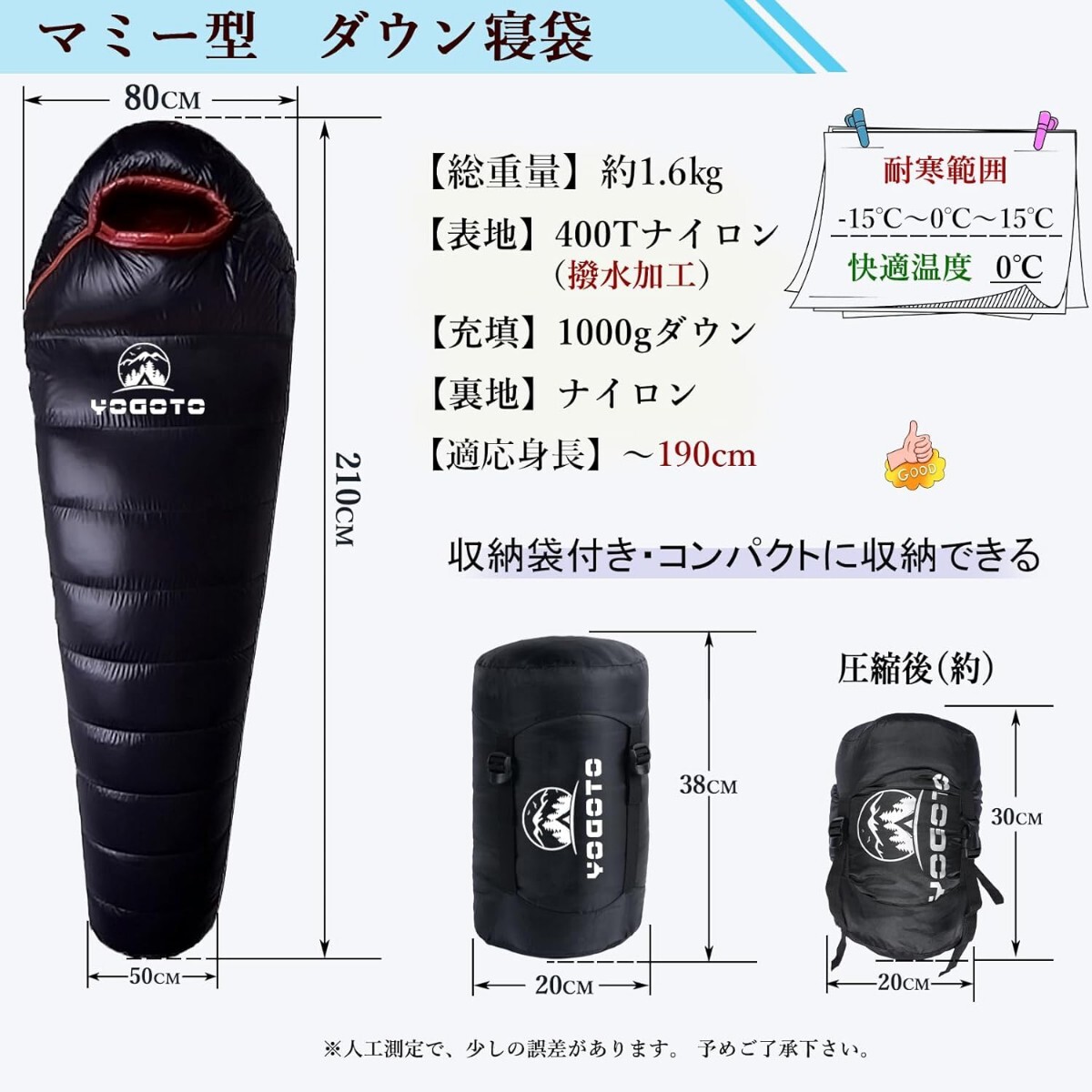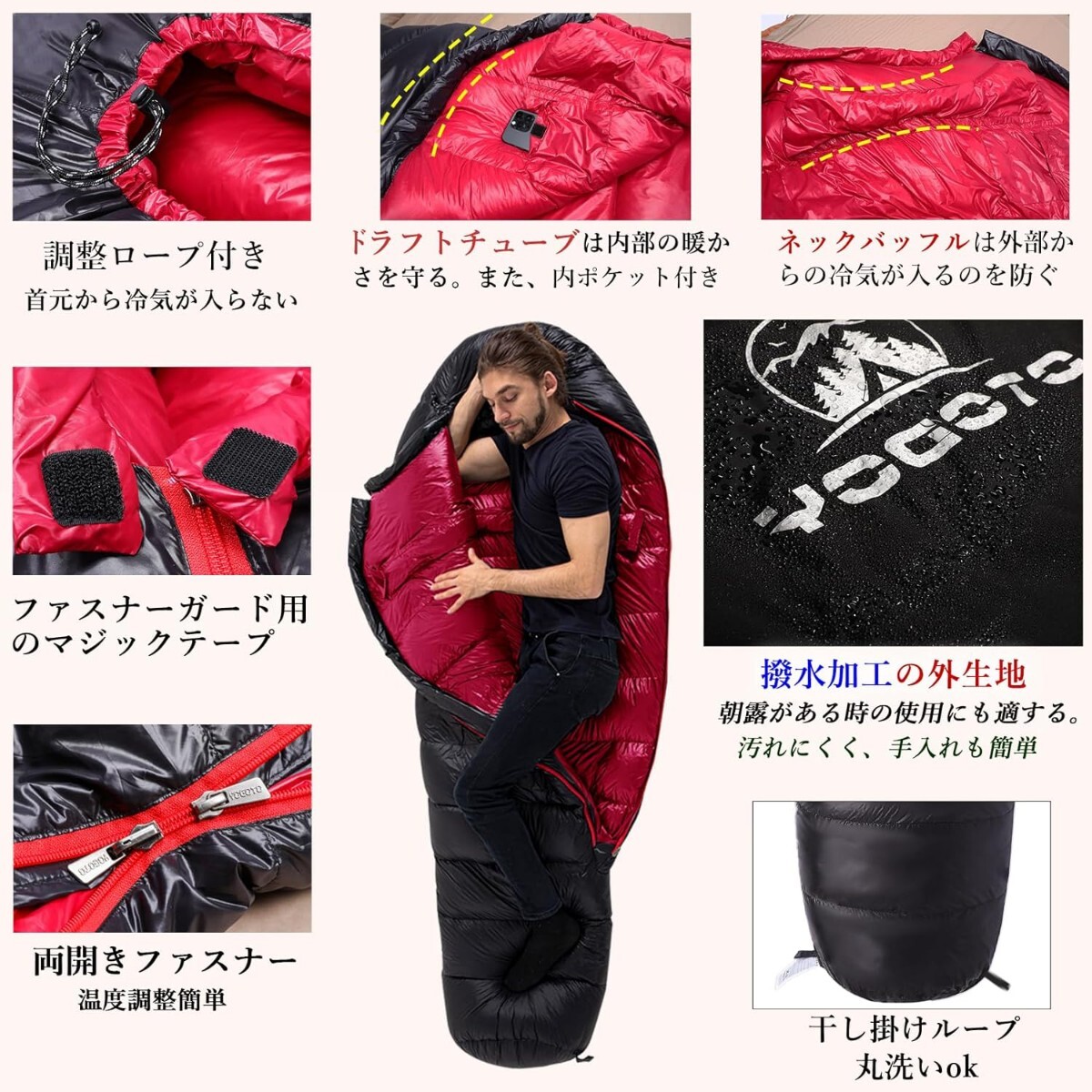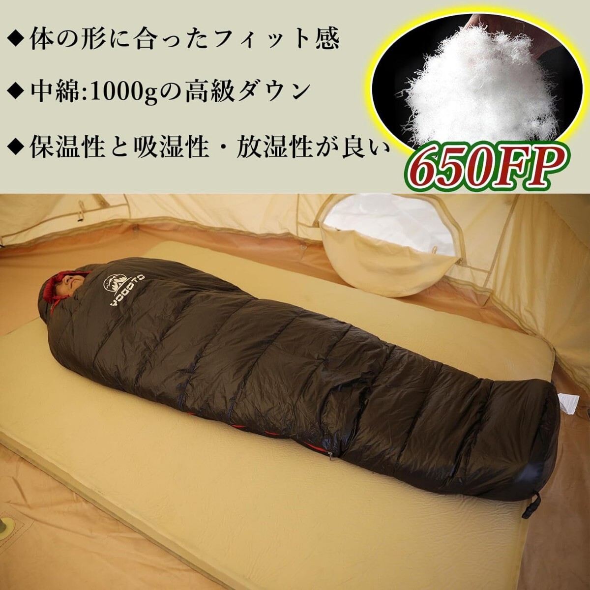 YOGOTO】 ダウン シュラフ 冬用 寝袋 650FP 高級ダウン マミー型 コンパクト 車中泊り 登山 封筒型 スリーピングバック 防災 避難用 撥水 [ 最低使用温度 -15度 ][ 最低使用温度 -15度 ]