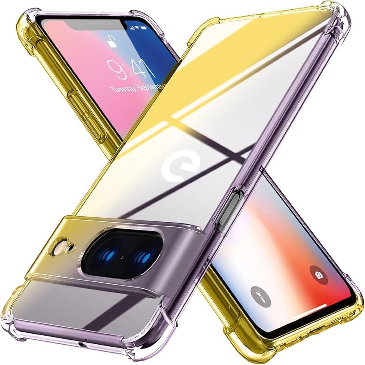 Google pixel 8 ケース クリア 薄型 グラデーション色 ケース 軽量 tpu 耐衝撃 スマホケース 透明 米軍MIL規格取得 おしゃれ 黄変防止防塵一体型 人気 ピクセル 8 携帯カバー 黒/ゴールド MD-JBK-031-04